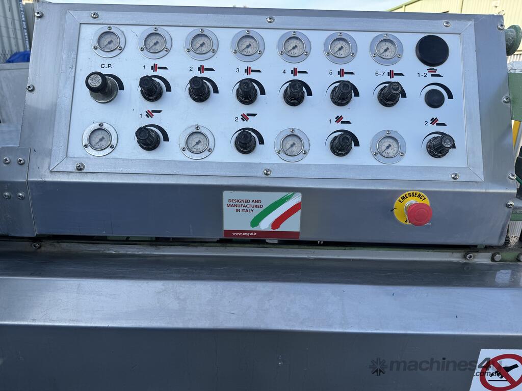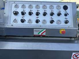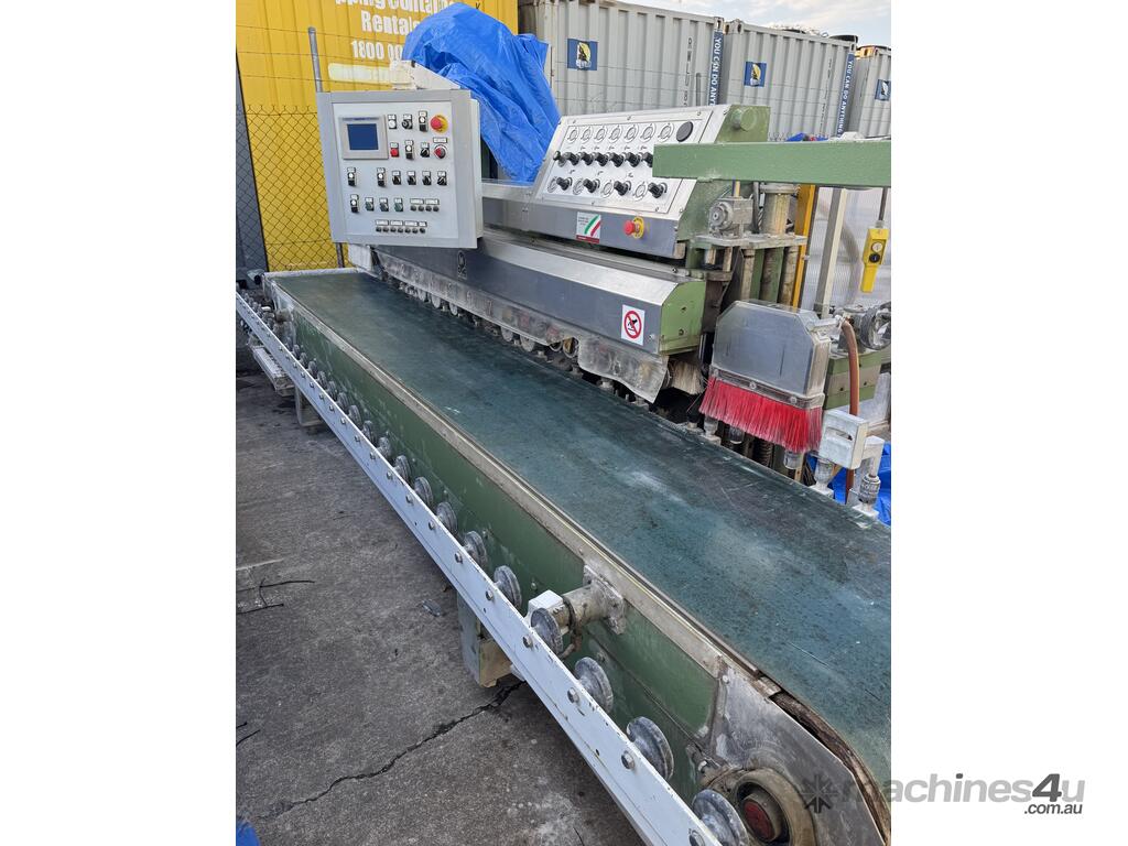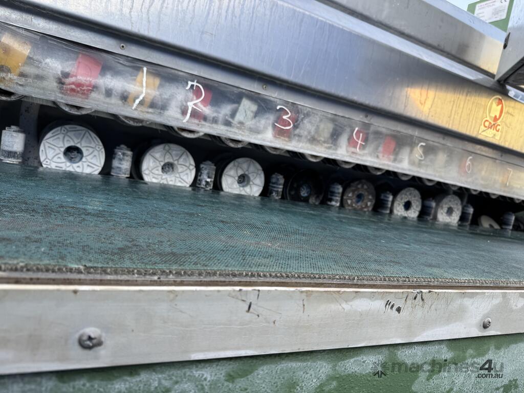 Features automatic lubrication, polishing up to 100 mm, and suitability for all stone types including engineered stone, granite and marble. Equipped with seven polishing heads plus a beveling heads and integrated saw. Computer-controlled with the ability to switch individual spindles on or off.