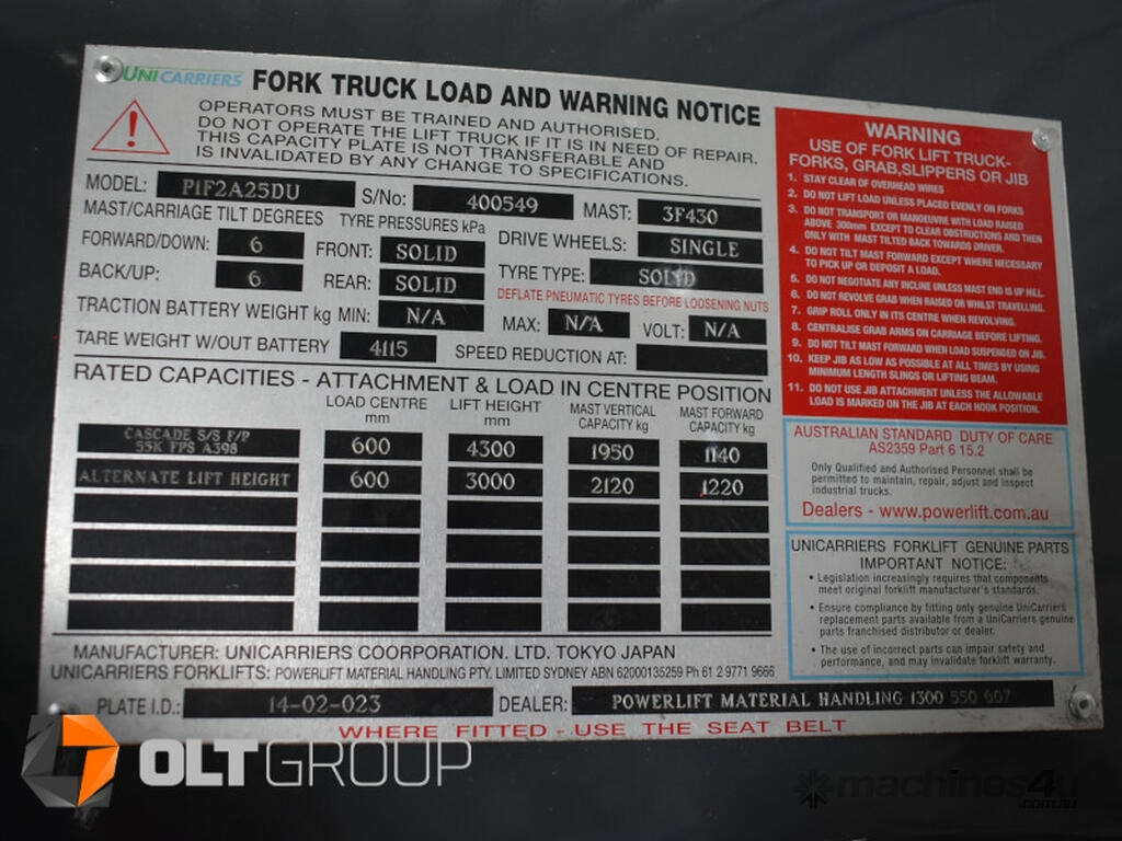 USED NISSAN P1F2A2U 2.5 TONNE FORKLIFT FOR SALE:
