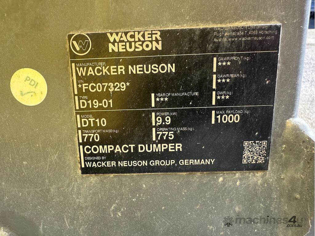 Excellent Condition 2022 Wacker Neuson DT10 dumper with Swivel Skip Tip. Save $$$$ over new machine. Extremely hard to find second hand and in such good condition. New tracks fitted and still under factory warranty.