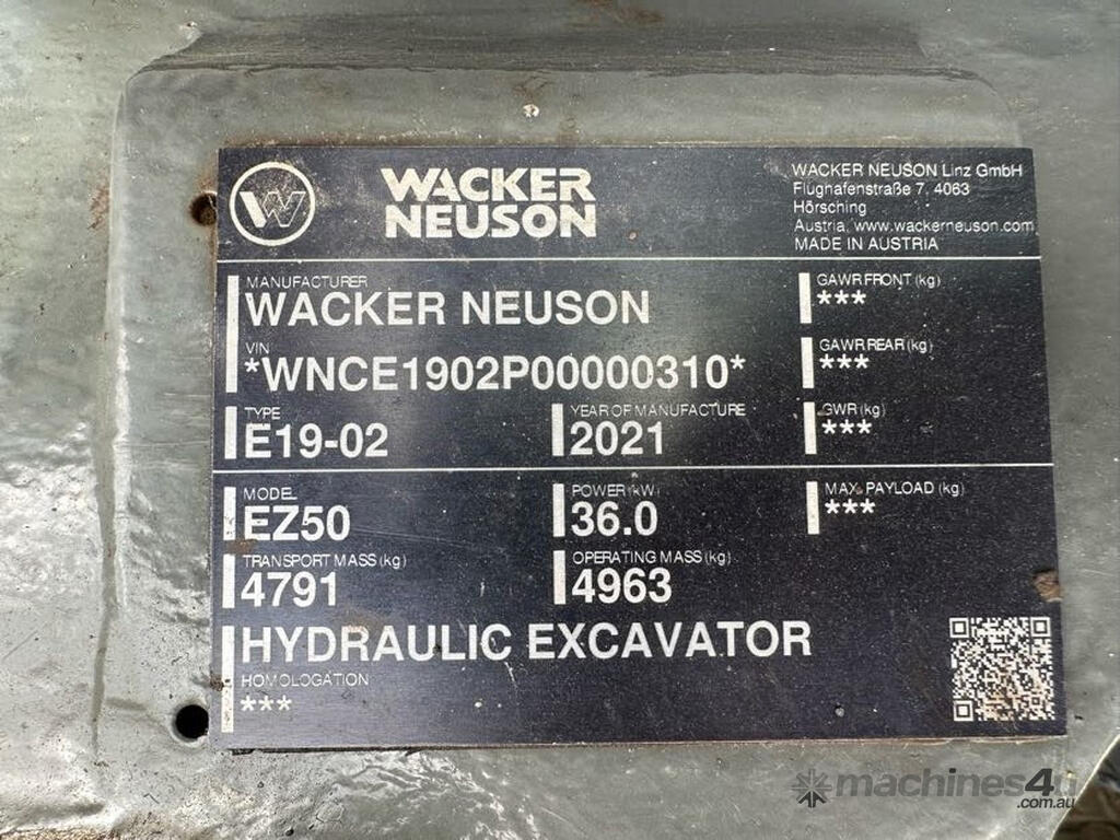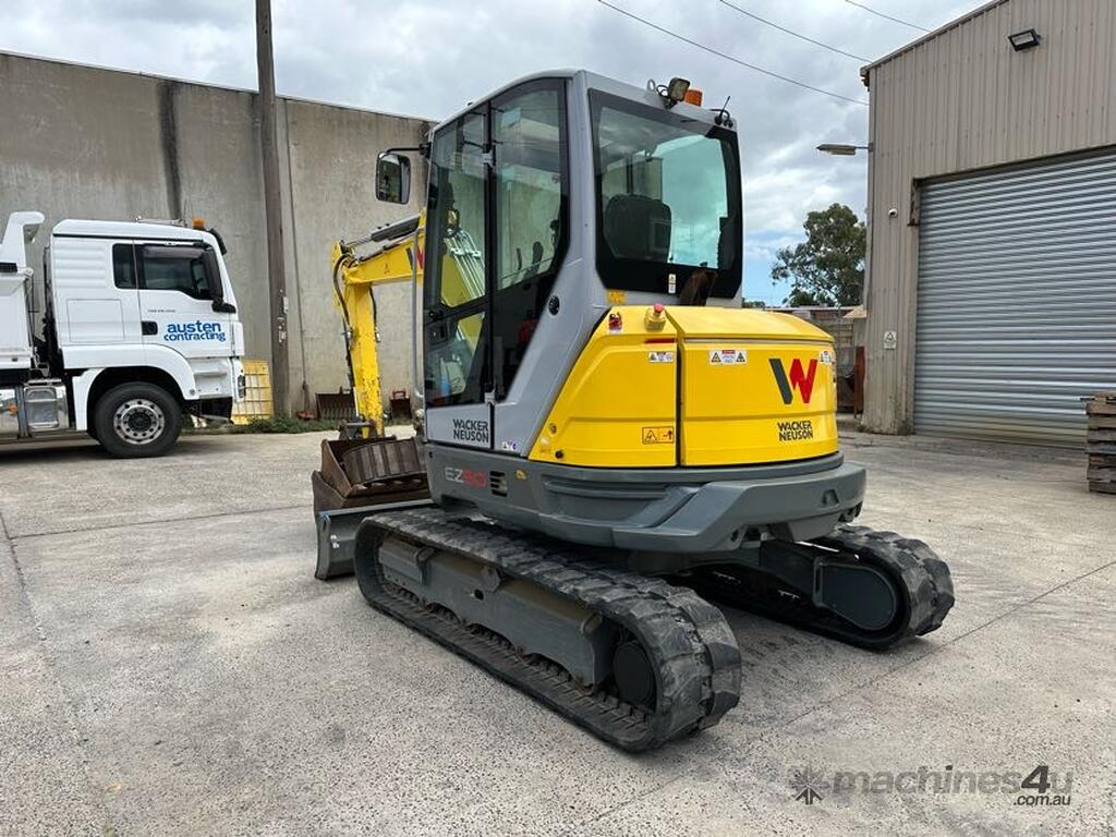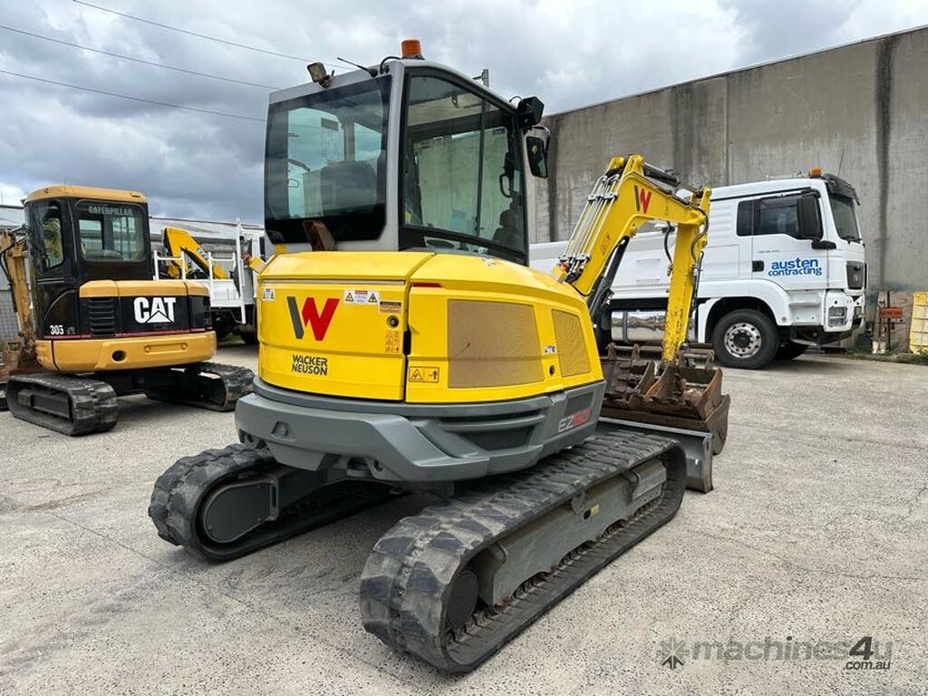 Great condition Wacker Neuson EZ50 contractor spec 5T excavator for sale. Air-Conditioned cabin with LCD screen and jog-dial controls. Additional Counterweight, long dipper arm and rubber tracks. This machine is priced to sell and won't disappoint.