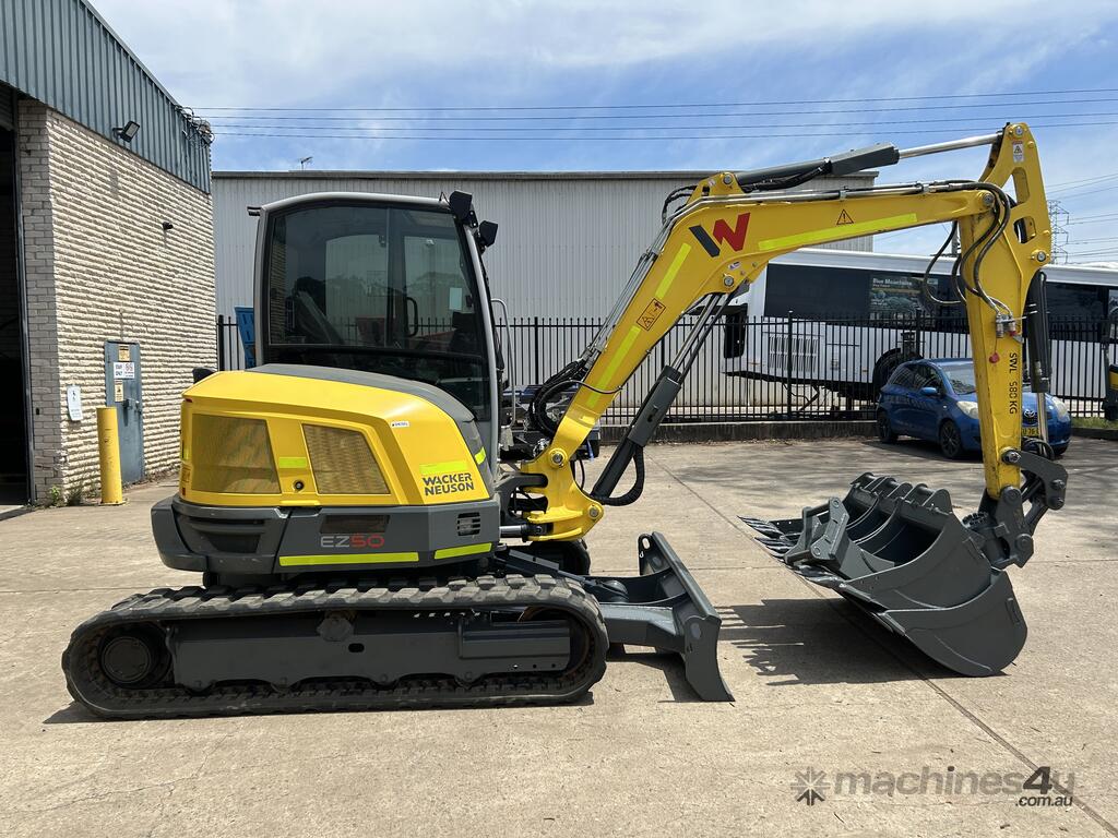 Excellent Condition Wacker Neuson EZ50 5.5tonner with full civil spec fitout. Fitted with Genuine Wacker Neuson Tilt Hitch, full set of buckets and Ripper, with a low 1452 hours. The Wacker Neuson EZ50 is extremely powerful and versatile with unique 3 pin bucket linkage providing industry leading rotational torque and 200 degree of rotation. Won't disappoint.