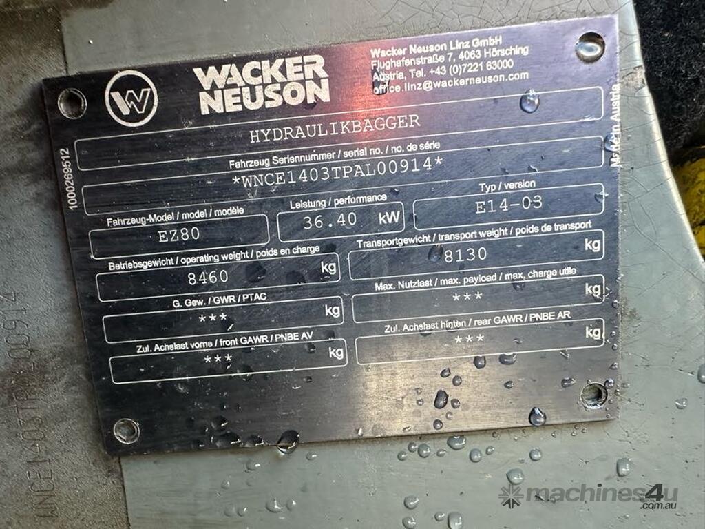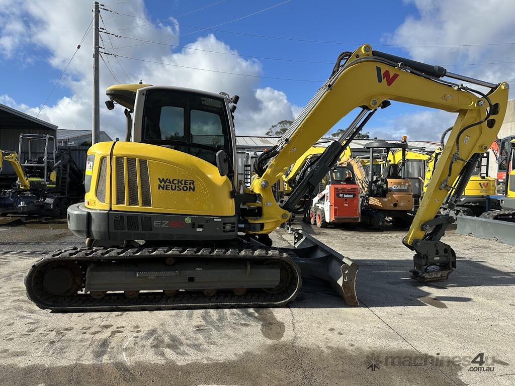 Excellent Condition Wacker Neuson EZ80 Excavator with 4209 hours and genuine Tilt Hitch. This machine is the contractor spec with additional counterweight, longer arm and safety kit fitted. Will be supplied with a brand new set of buckets.