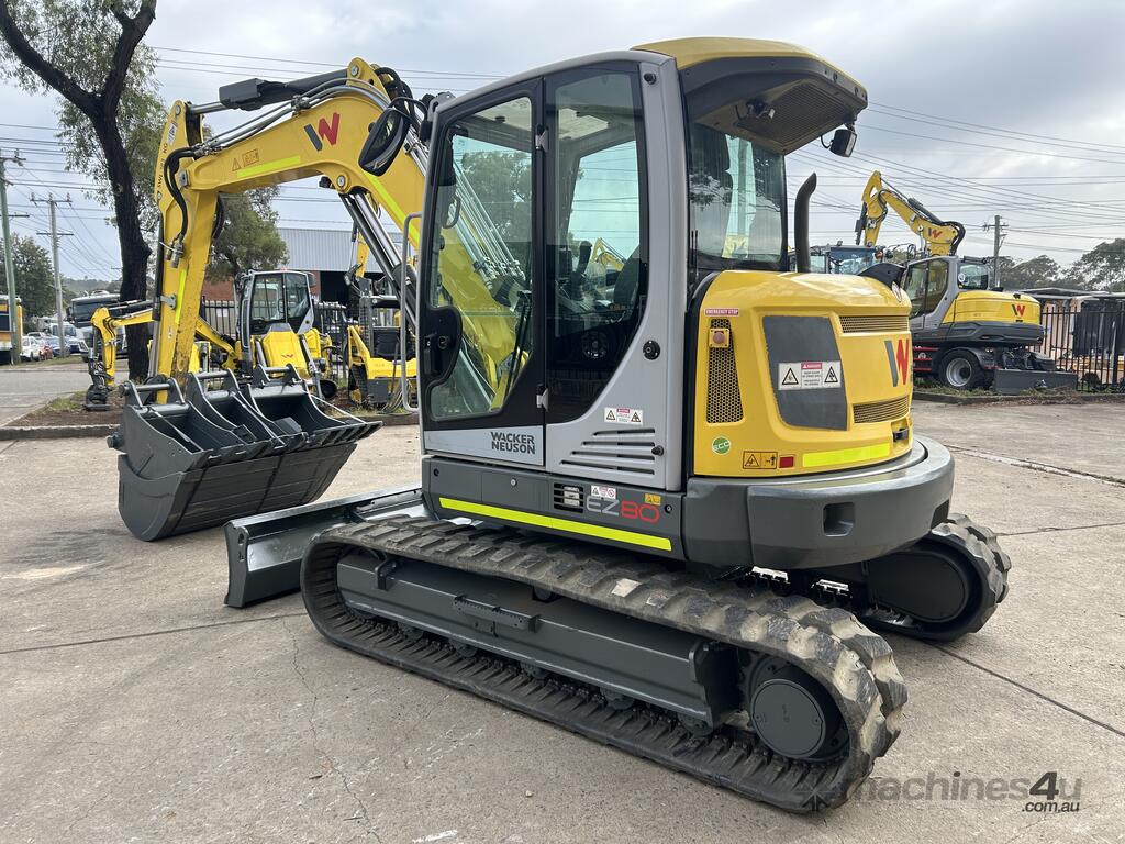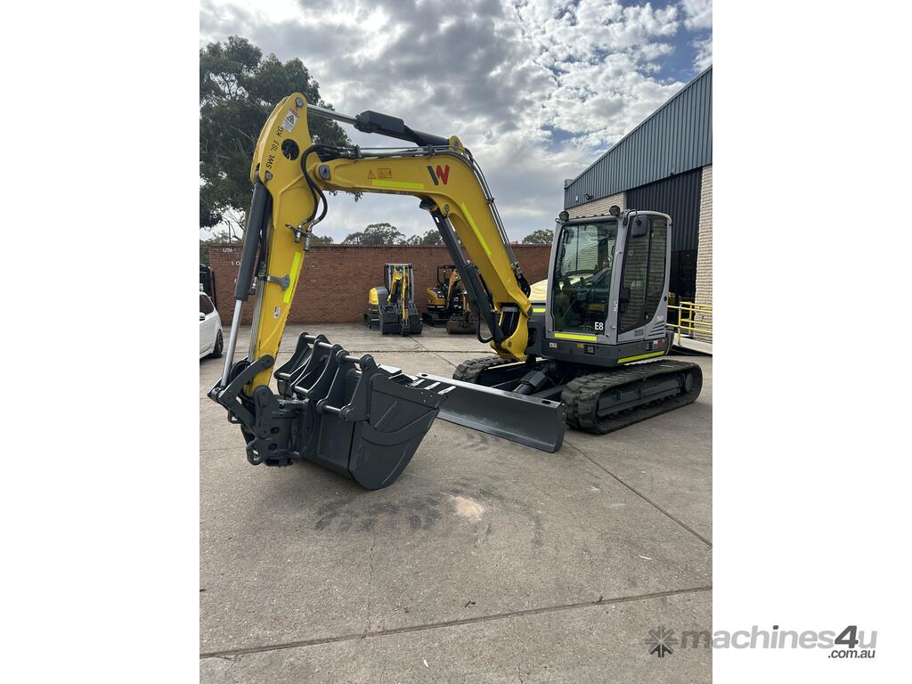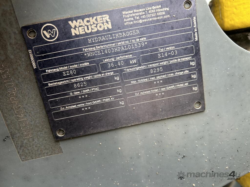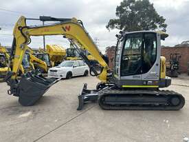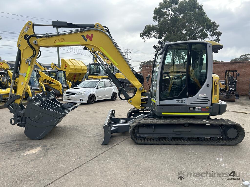 Excellent Condition Wacker Neuson EZ80 with hydraulic Tilt Hitch. This is the most powerful 8tonner on the market with outstanding bucket breakout force. Everything you would expect from a German Engineered excavator with LUDV load-sensing hydraulics from Bosch-Rexroth. The most comfortable cab on the market with an air-ride heated high-back seat and full climate control. This machine is ready for immediate work, fitted with a tilt Hitch and full set of buckets.
