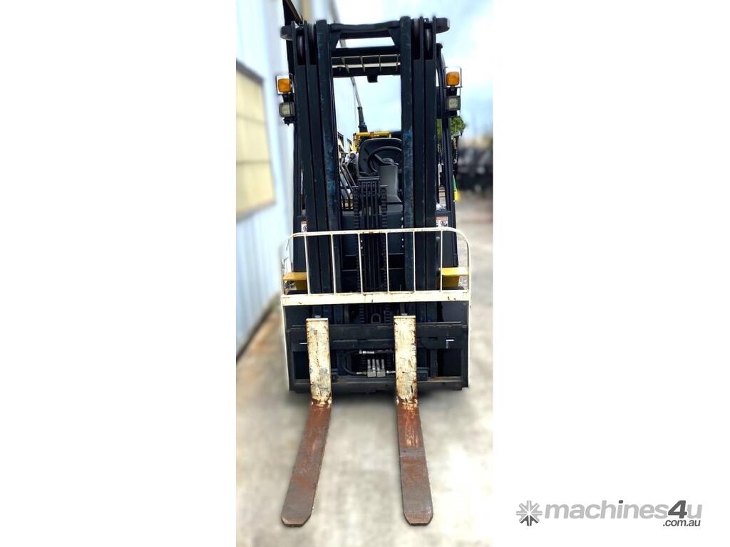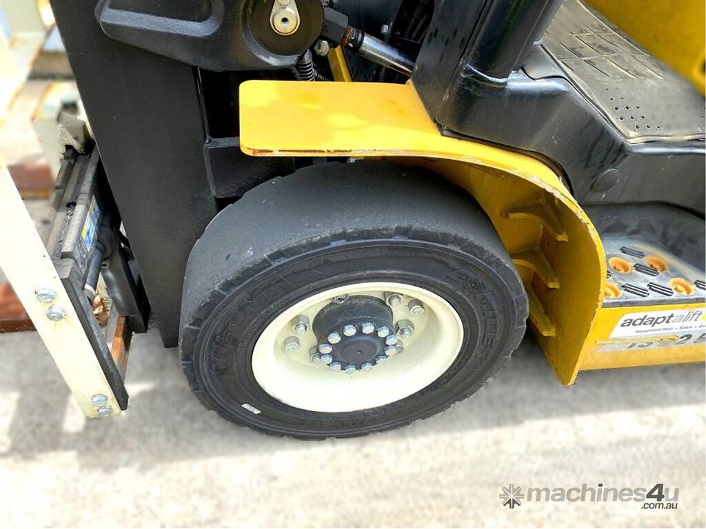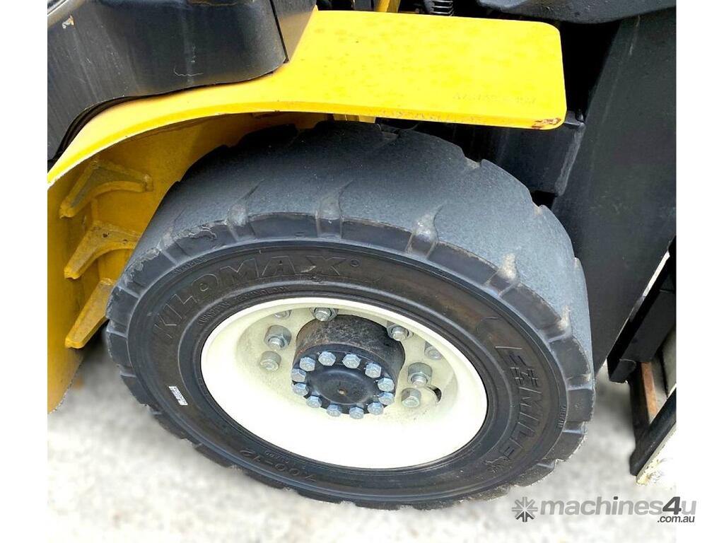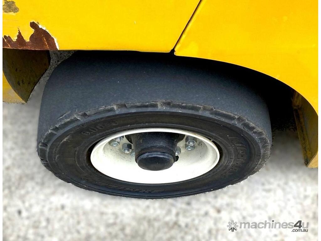 Unit is equipped with solid tyres and operates on LPG fuel.