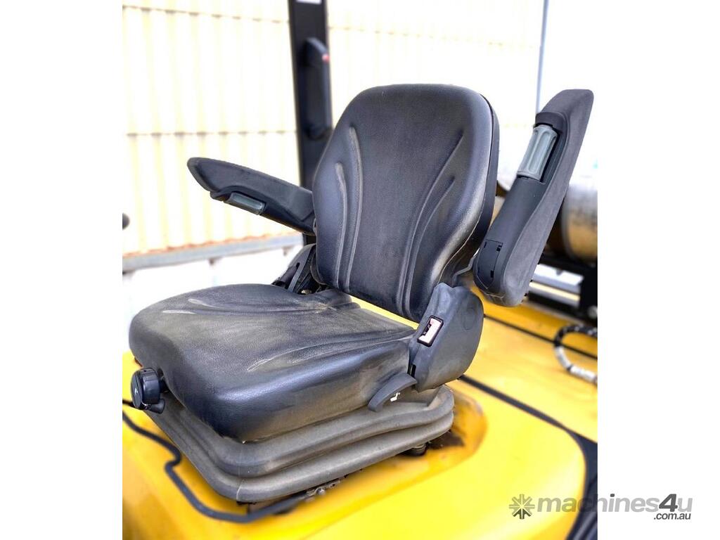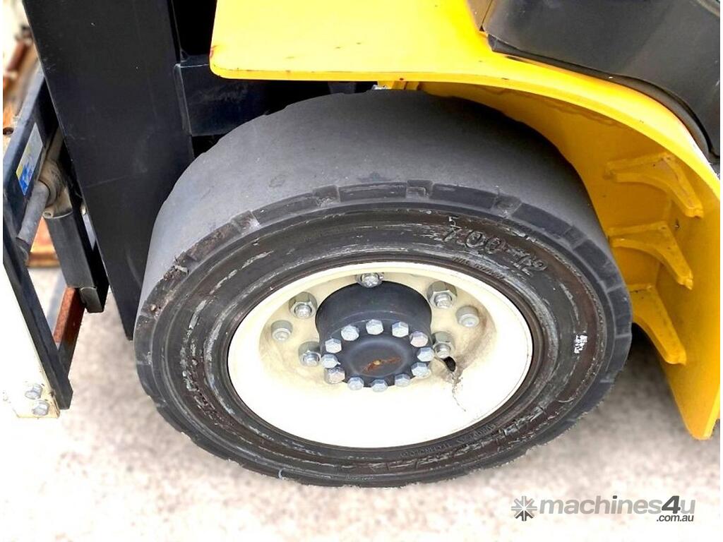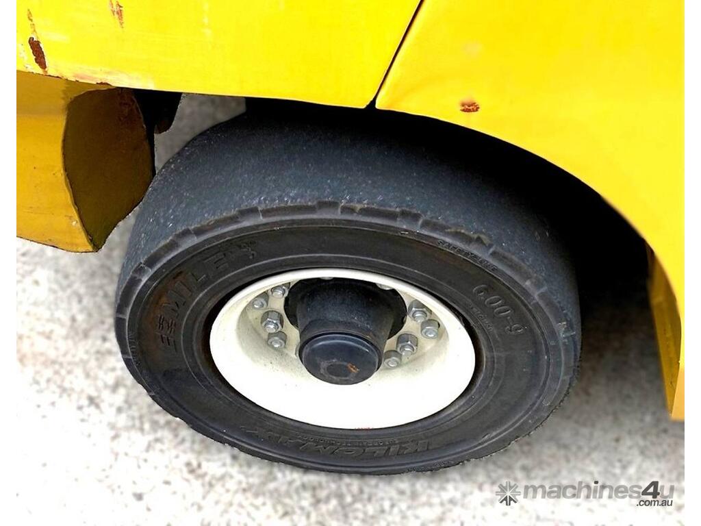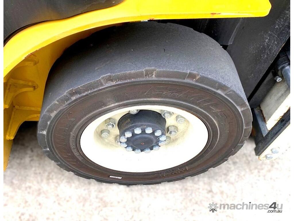 Unit is equipped with solid tyres and runs on LPG fuel.