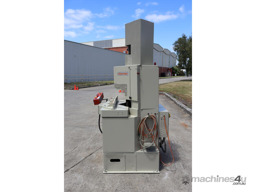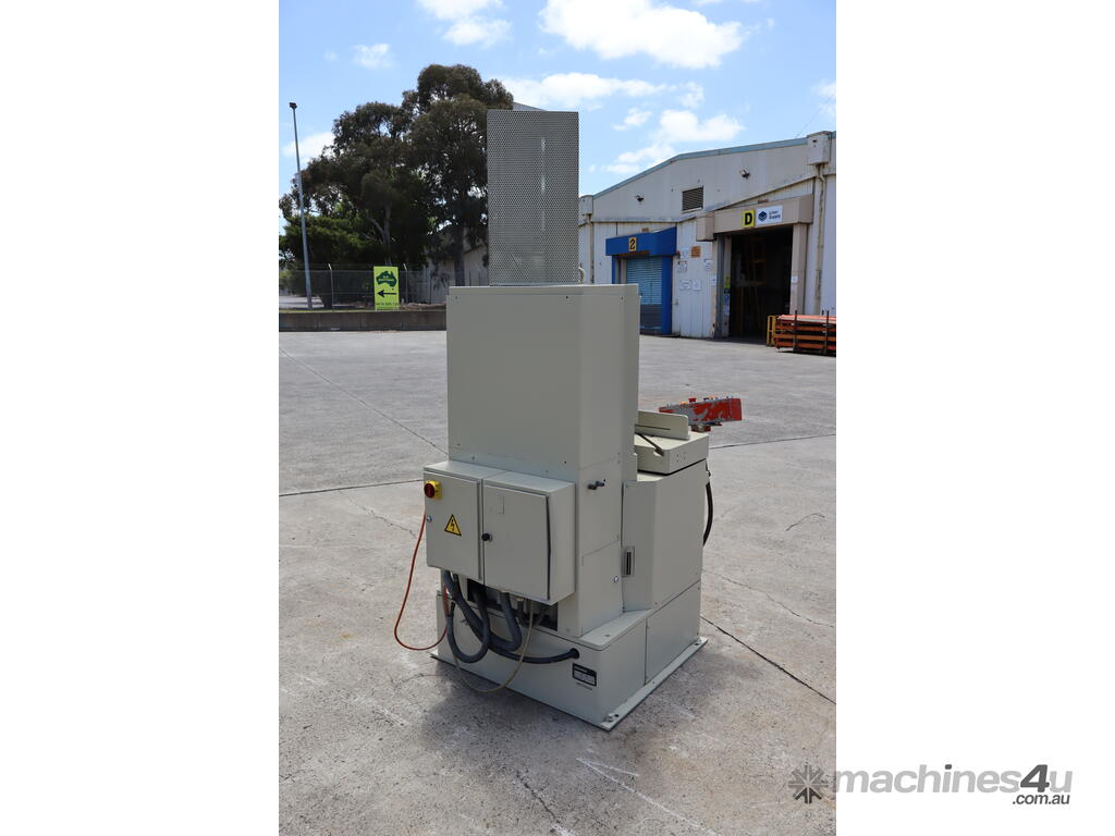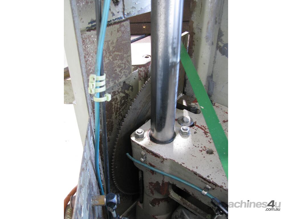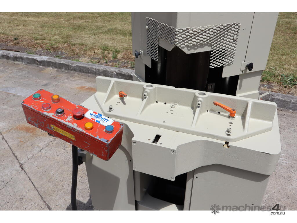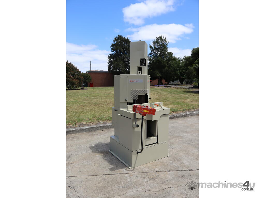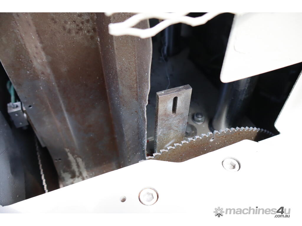 Has 2x 5HP motors powering the blades and a pneumatic clamp system.