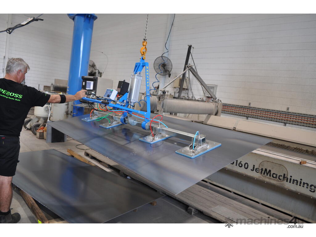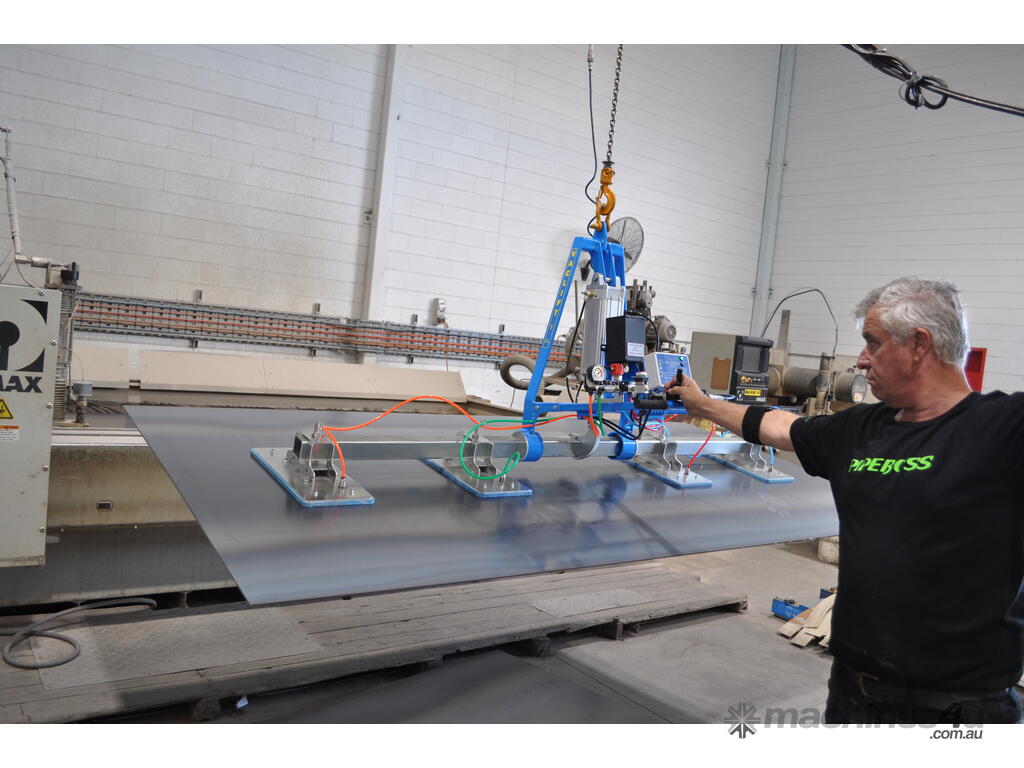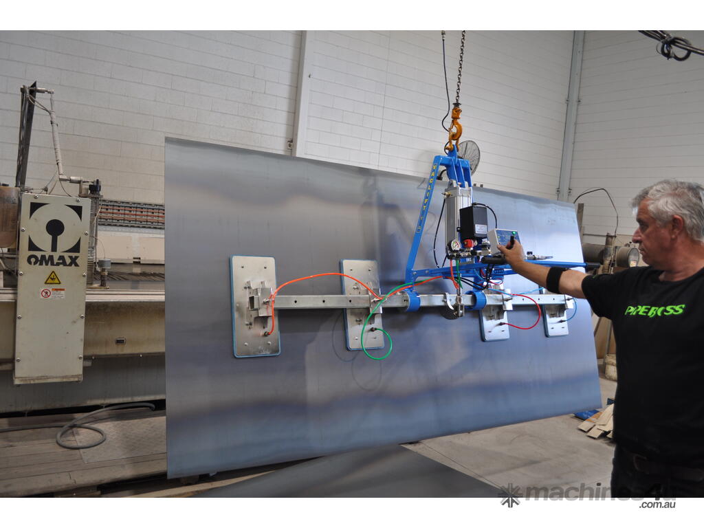 The CVL500PT is a robust crane-mounted vacuum lifter designed for workshop and industrial use. Built for performance and safety, this unit offers a reliable solution for lifting and tilting heavy materials up to 500kg with ease. Operating on compressed air, it features a 90-degree power tilt function and 4 high-performance Vaclift Hi Vac pads - specially engineered to handle abrasive environments like waterjet cutting and stone processing. With a durable powder-coated and zinc finish, audible and visual safety alarms, and a quick-adjust pad system, the CVL500PT is made to withstand tough conditions while delivering smooth, efficient operation. Each unit meets both Australian and USA safety standards and includes a full set of care and maintenance instructions for long-term use. Ideal for businesses needing safe, hands-free lifting capability in demanding environments.