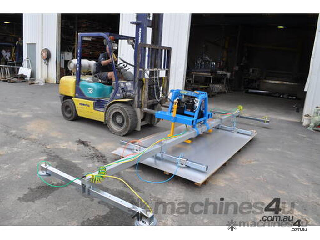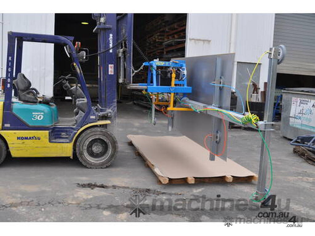 VACLIFT - Forklift vacuum lifter with power tilt and extendable main beam, custom built to lift large caravan composite panels used in todays caravan construction.