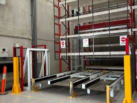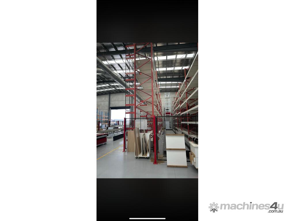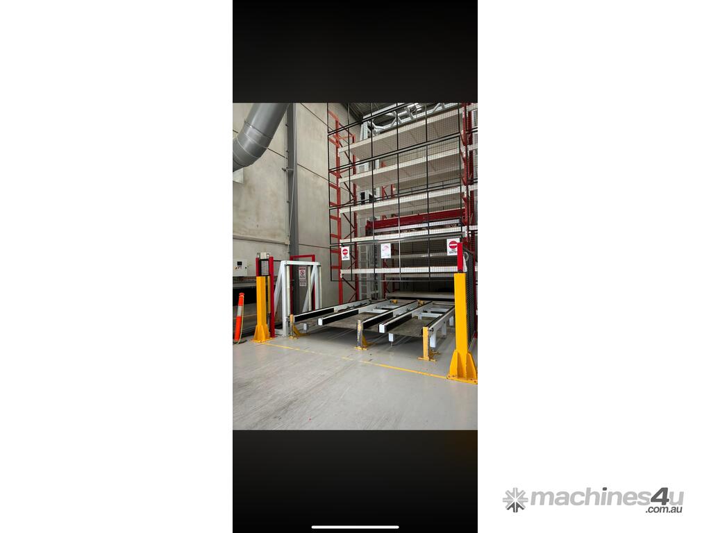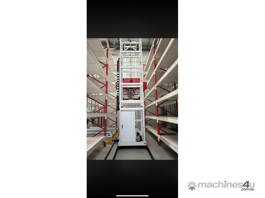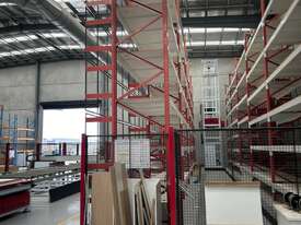 VERTICAL BOARD STORAGE SYSTEM , CUBE 2019 5 BAY 25 BAYS SINGEL AISLE INFEED TABLE .