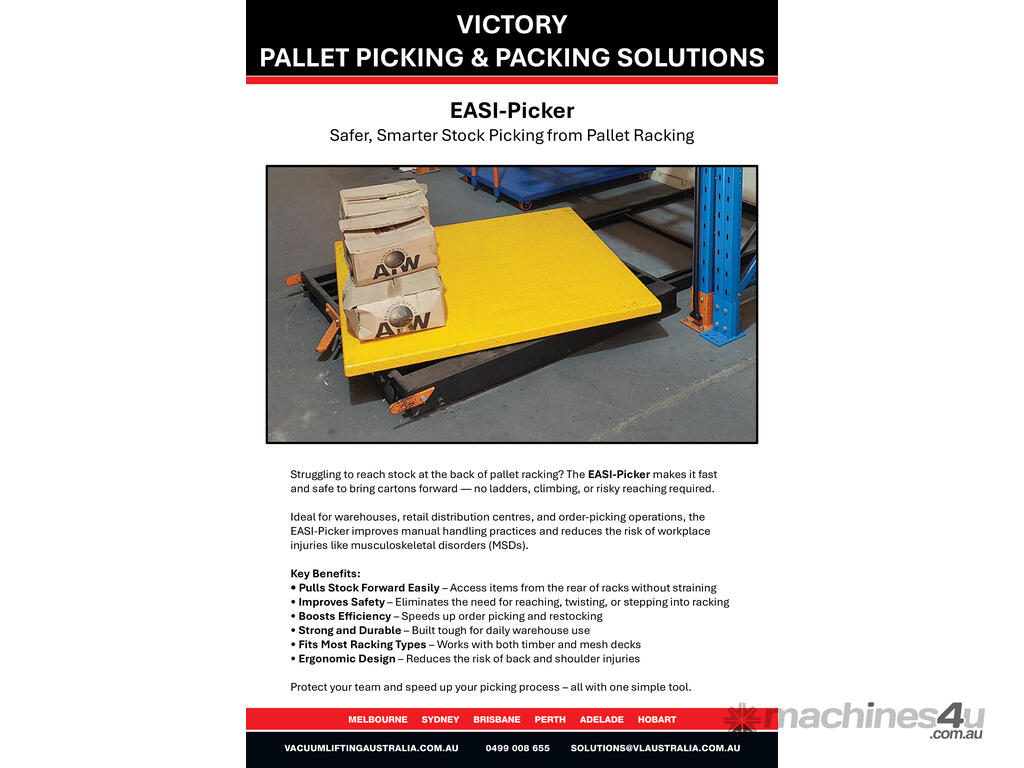 **Contact us today** for expert advice, fast shipping across Australia, and a solution that pays for itself in safety and time savings. The EASI-Picker is simple, effective, and ready to transform how your team works.