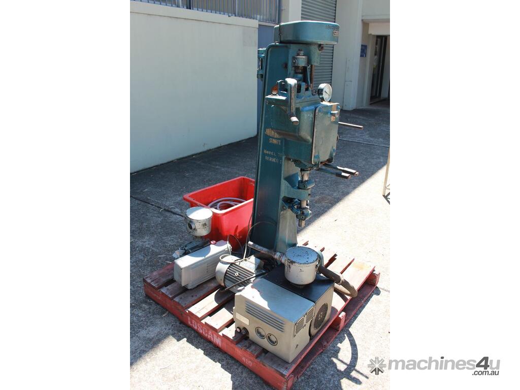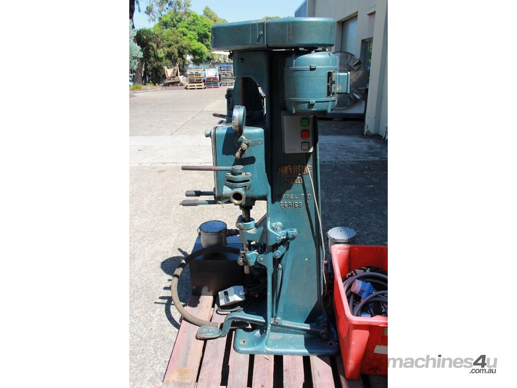 Vacuum Can Seamer, "John Heine" Model 71D series 2, presently set up for 140mm can, with crimping wheel and vacuum pump, 3 phase connection, foot pedal, manually operated