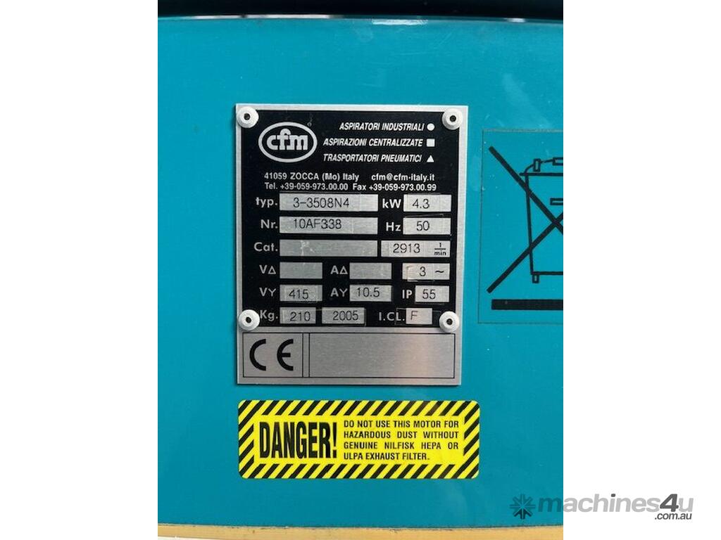 The CFM 3508 is a powerful 4kW three phase industrial vacuum cleaner, giving a higher vacuum than the CFM 3308 enabling faster removal of heavier rubble, solid materials and with the correct adapter kit, liquids.