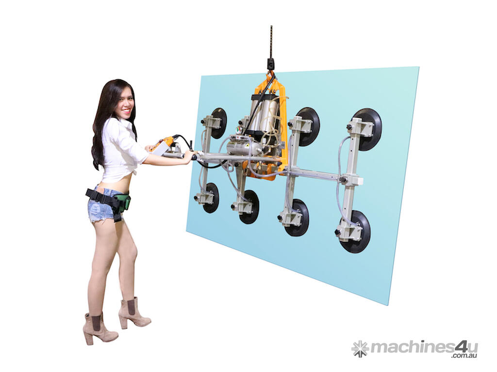 This vacuum lifter is suitable for lifting glass sheets in large sizes. Features rugged construction with the added ability to lift and tilt the slab materials.