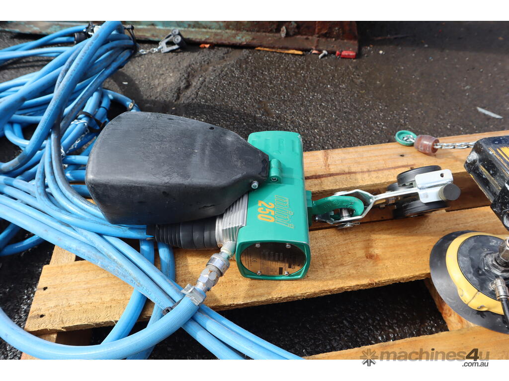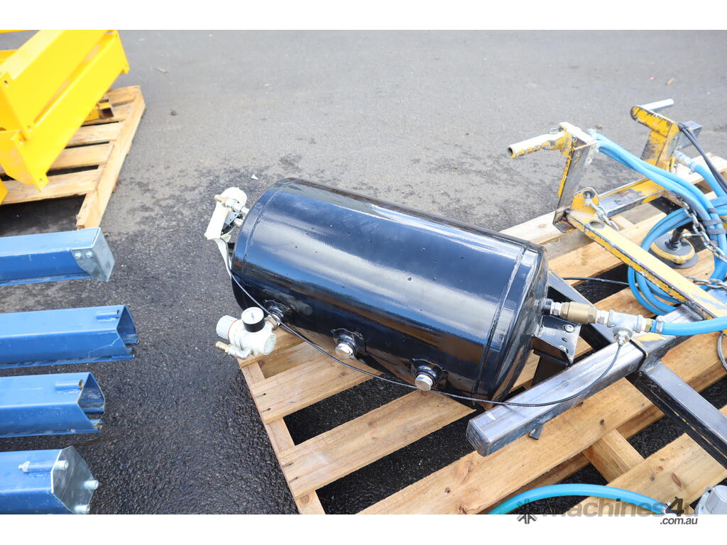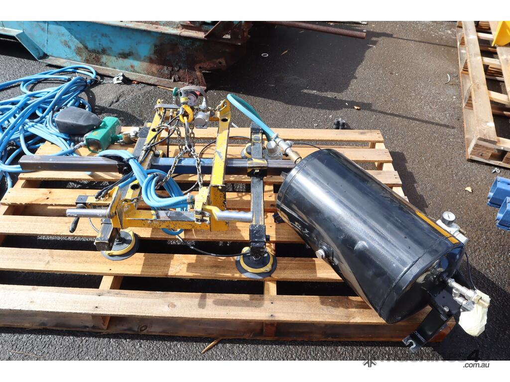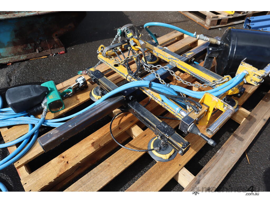 The head is designed to pickup flat objects & sheets and it lifts up and down via a pneumatic chain hoist. The suction cup positions can also be adjusted to suit different area sizes.