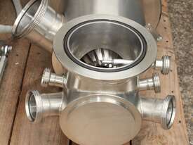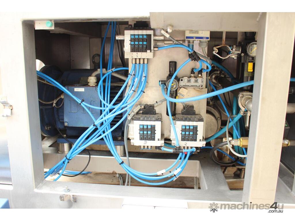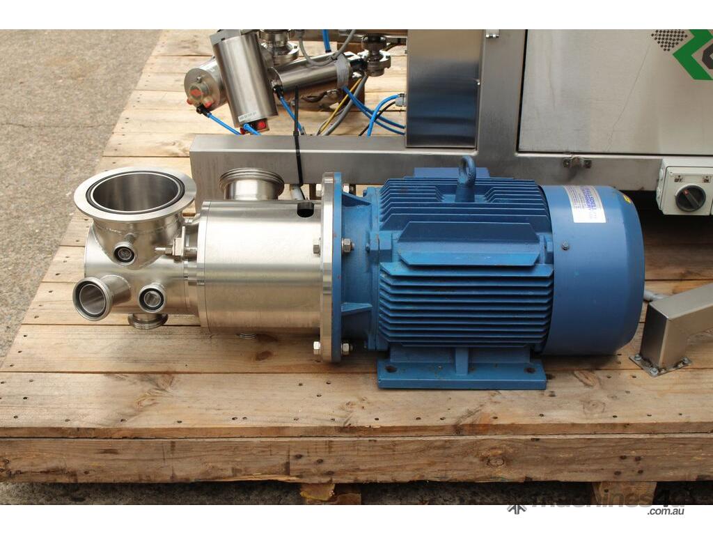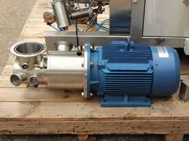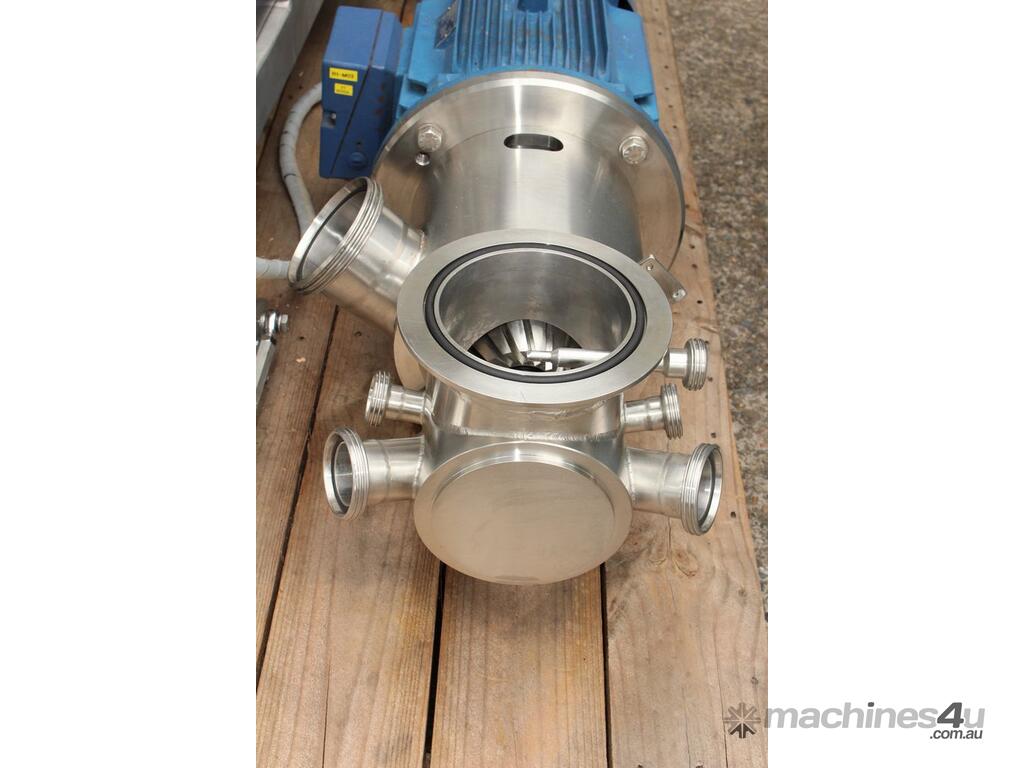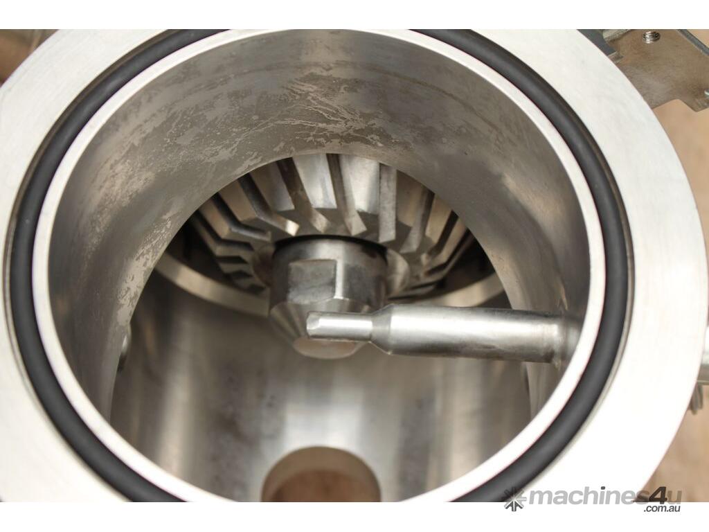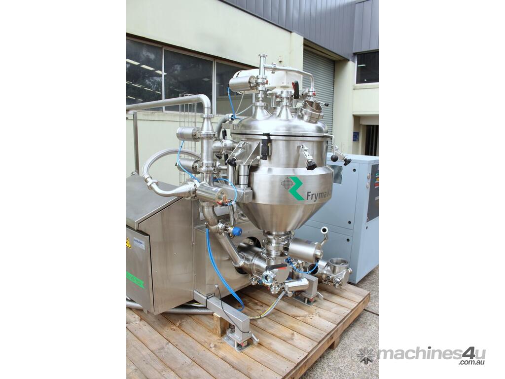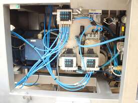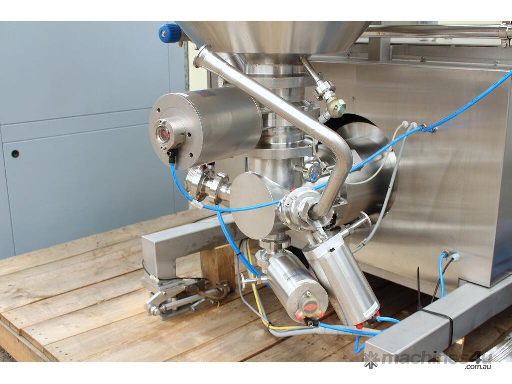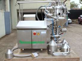 Vacuum Mixing Vessel, "Fryma Koruma" model MaxxD 200, 200 litre unit with 160 litre working capacity (minimum 30 litre), conical vacuum mixing tank with top entry 1.5kW 32rpm agitator and side scrapers feeding to inline 18.5kW tooth mill homogeniser operating 600–3000rpm, complete with 1.5kW vacuum pump, vessel rated vacuum -1 to 0 bar and double jacket pressure max 6 bar, all stainless steel wetted parts, 3 phase power supply, suitable for semi-solid products up to 80,000 cP viscosity, Vessell built in 2001 and upgraded in 2010 with the addition of Profesional "AZO" control system, supplied complete with "Dr Dinkelacker Energiesysteme" heater unit type TT135/PHE/LK S/N 01 1018 (hot water generator, 3 phase, 53VA, mobile) and chiller unit type TT23000/RB S/N 01 1019 (chilled water generator, 3 phase, 7.2VA, mobile