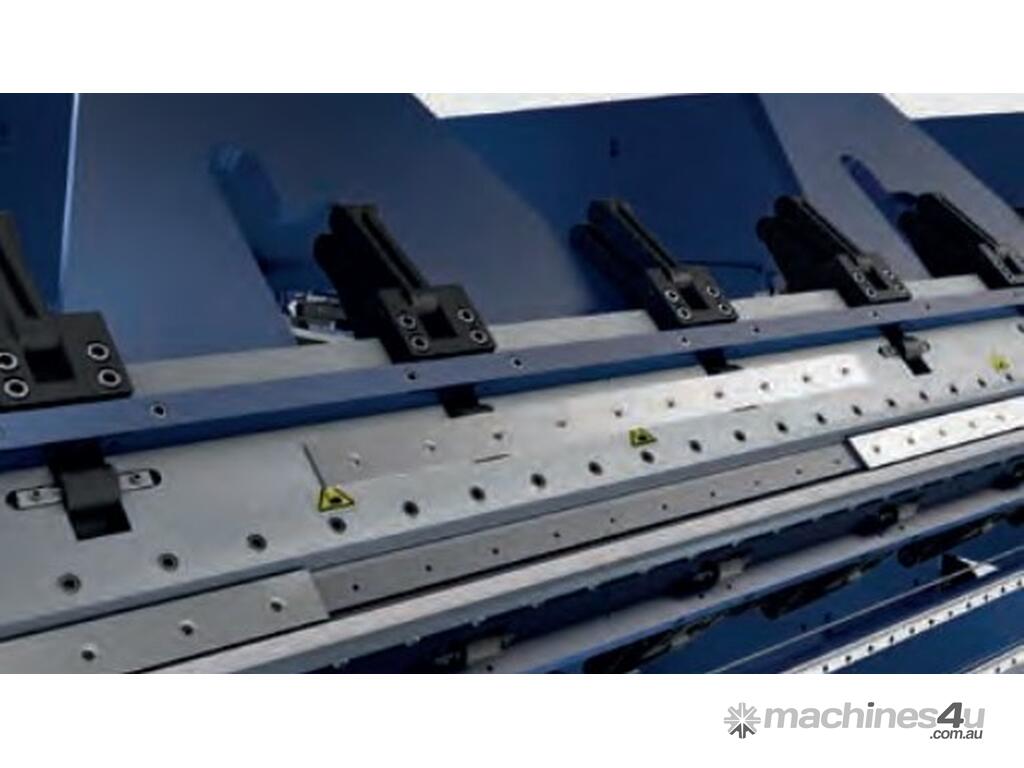 In combination with the servo technology used, these unique dynamics cause impressive and especially highly efficient movement patterns. The electric clamping beam crowning is an outstanding feature. The fully-automatic crowning system eliminates overbending at the outer sides of the edge parts. The clamp beam crowning and the servo technology is available for model series DB as an optional feature.
