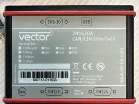 The Vector VN1630A is a dual-channel CAN/LIN interface designed for professional automotive development, simulation, and diagnostic testing. This unit includes licensed versions of Vector CANoe and CANoe.DiVa software—providing a complete environment for ECU and network validation, SIL/HIL testing, and automated diagnostic verification. Ideal for OEM and Tier 1 test engineers, automotive R&D teams, and embedded systems developers.