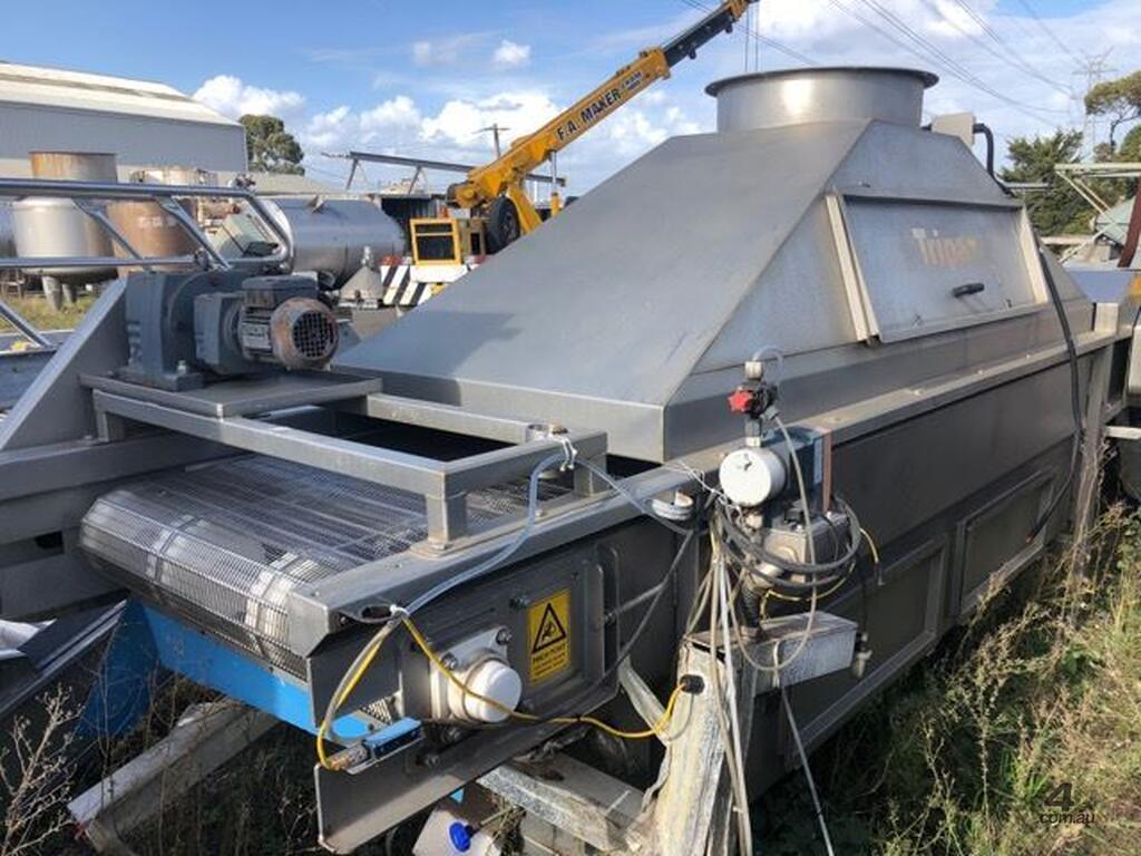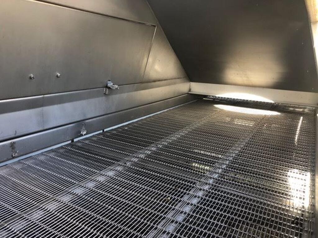 Extraction hood mounted over the conveyor and drainage point for water run off.