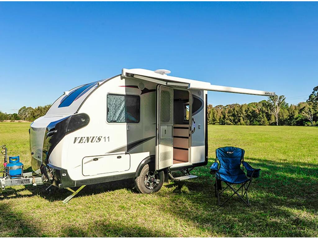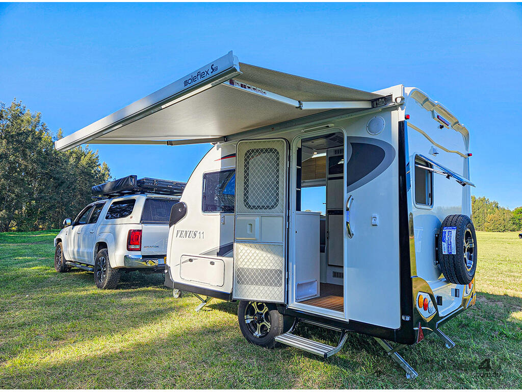 The VENUS11 11FT CARAVAN is a sleek and compact caravan that offers a comfortable and convenient living environment for two adults. Measuring just 11 feet in length, this caravan is ideal for those who want to travel light but still enjoy the comforts of home on their camping trips. The VENUS11 features a modern and stylish interior with a range of amenities to make your camping experience as comfortable and enjoyable as possible.