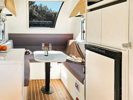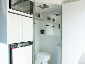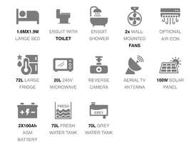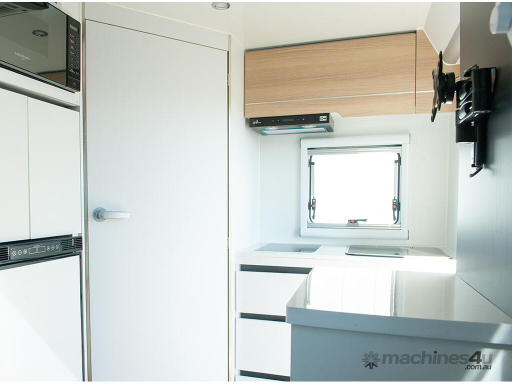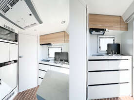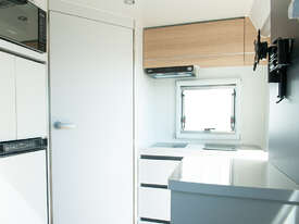 The caravan is also fitted with air conditioning to ensure you stay cool and comfortable on hot summer days. Despite its compact size, the VENUS11 has plenty of storage space, with cupboards and drawers located throughout the caravan.