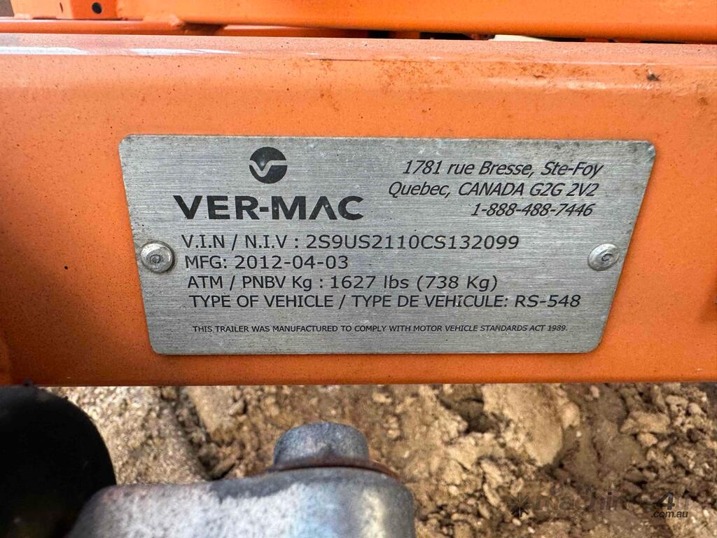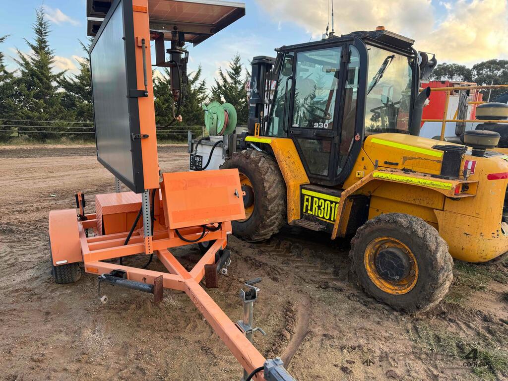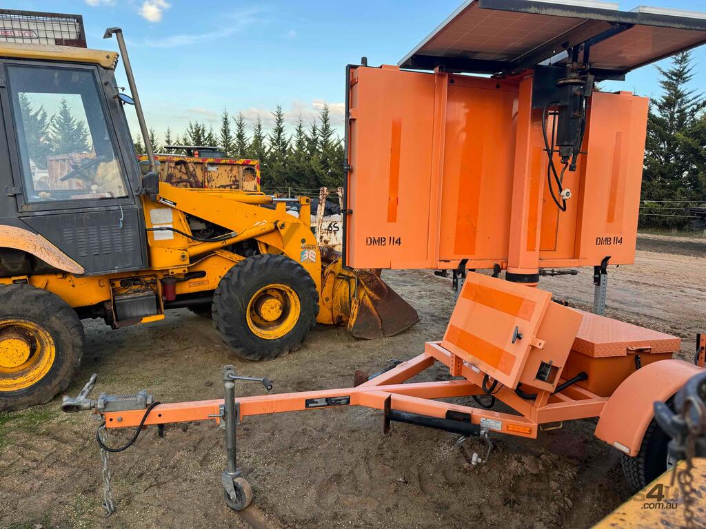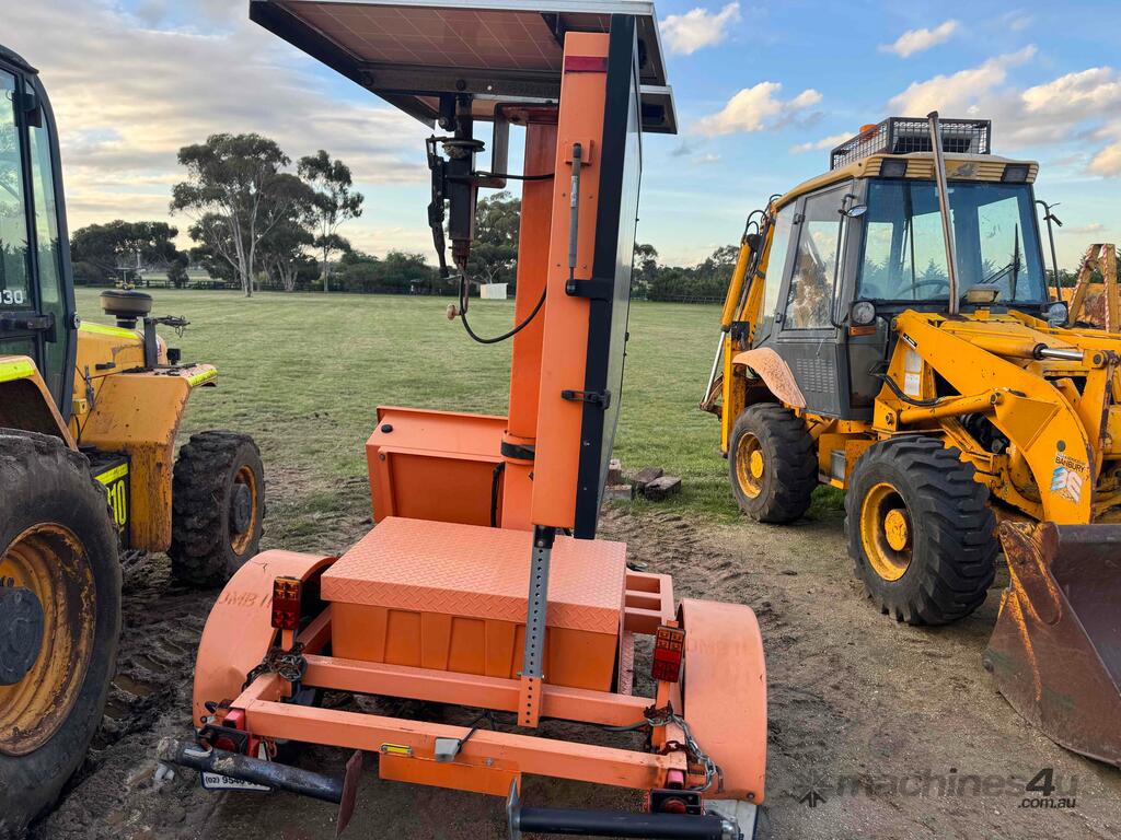 VERMAC PCMS548ORANGE SIGNBOARD TRAILER SINGLE AXLE, INCLUDING SOLAR PANELS, HYDRAULIC MAST, STABILISER LEGS,