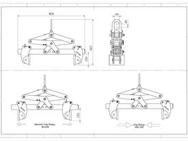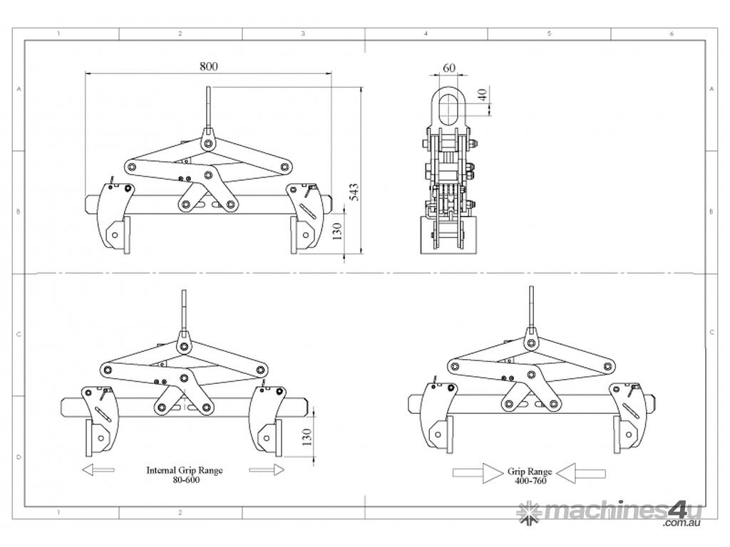 Reversible Sliding Pads - Versatile pads which can be flipped to either secure loads externally or grip them internally, making it effective for lifting blocks and handling uniquely shaped materials such as cylindrical objects. The adjustable sliding mechanism also allows operators to modify the grip width, accommodating varied load sizes ranging from 100 - 600mm.