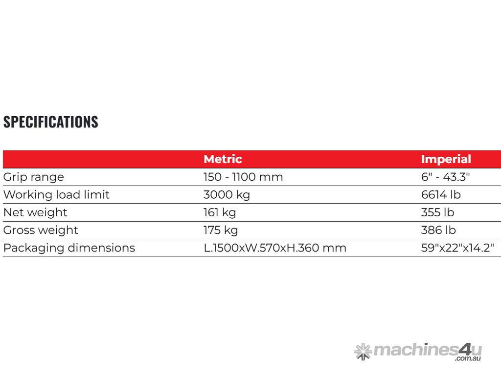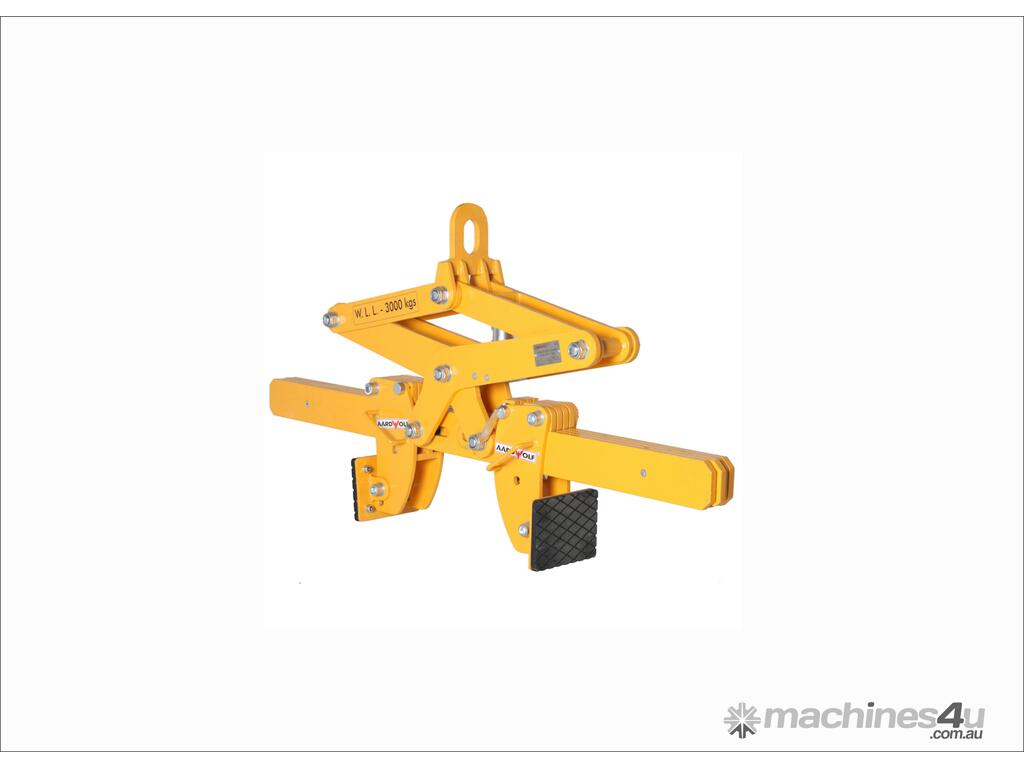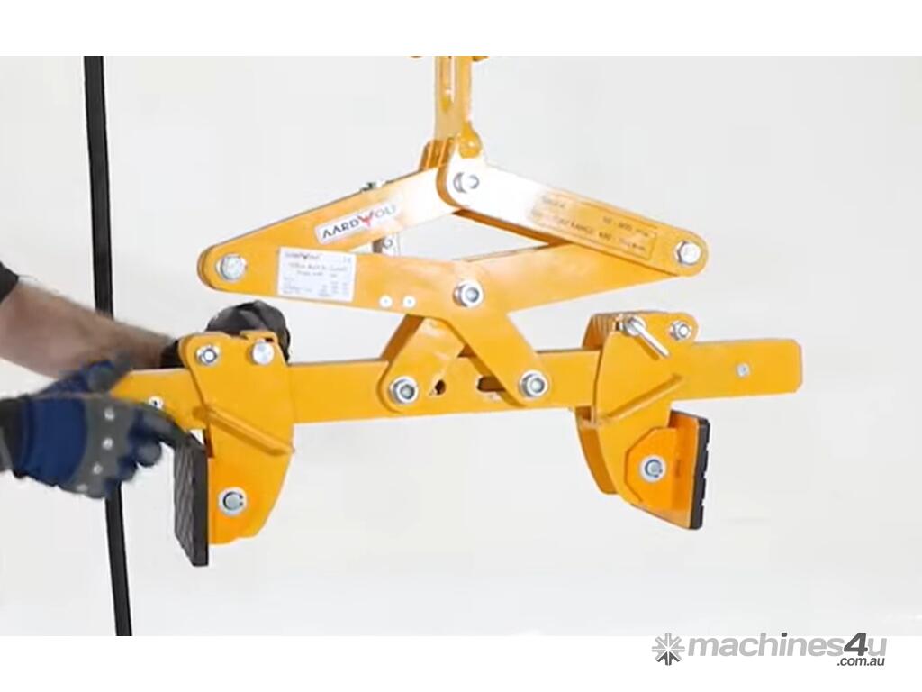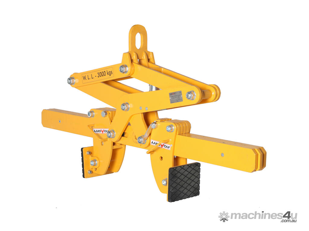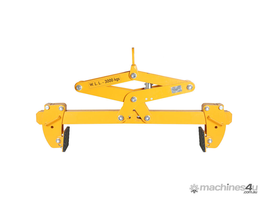 Adjustable jaw width: features sliding pads to accommodate objects of different widths. These pads are securely locked into place with a latch on each side, ensuing stability during lifting.