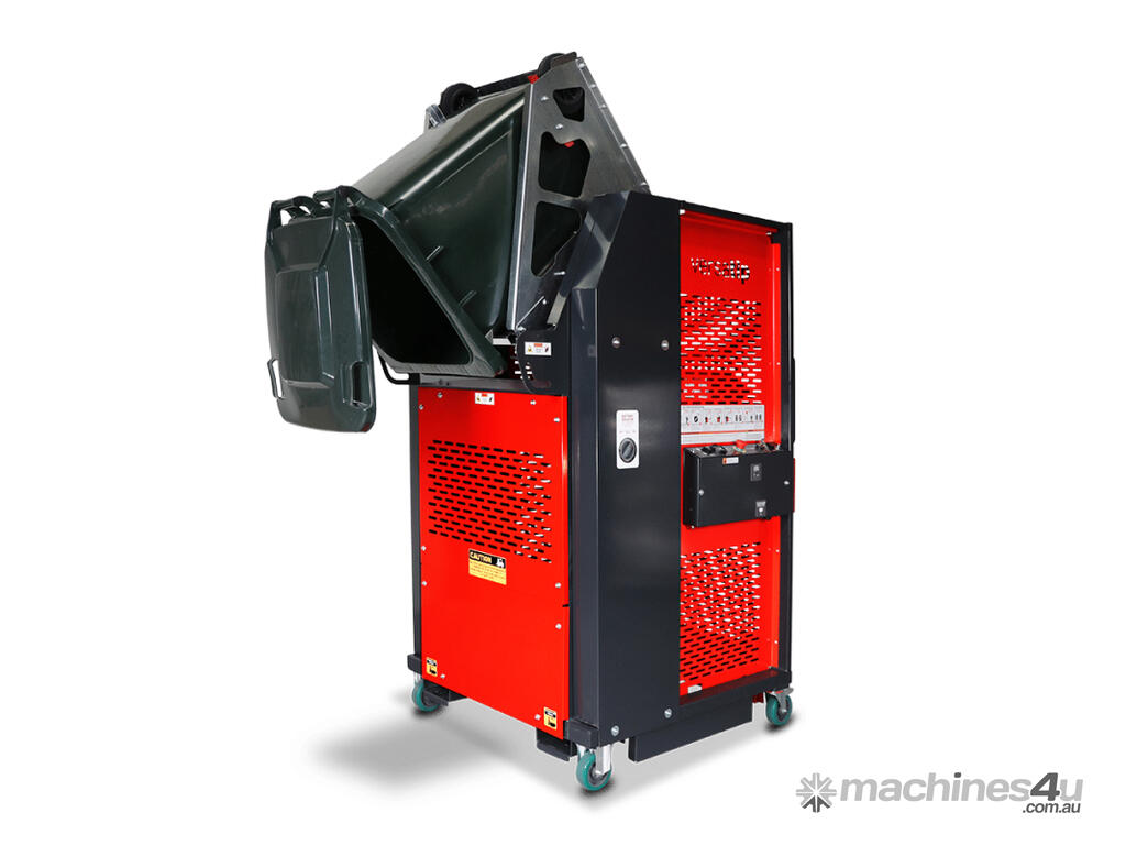 The Versatip bin tipper is expertly engineered to ensure swift, safe emptying of a diverse range of mobile bins for single operators. Designed to accommodate wheelie bins ranging from 80 to 240 litres (Versatip model) and 80 to 360 litres (Versatip 360 model), with optional tipping heights up to 2400 mm.