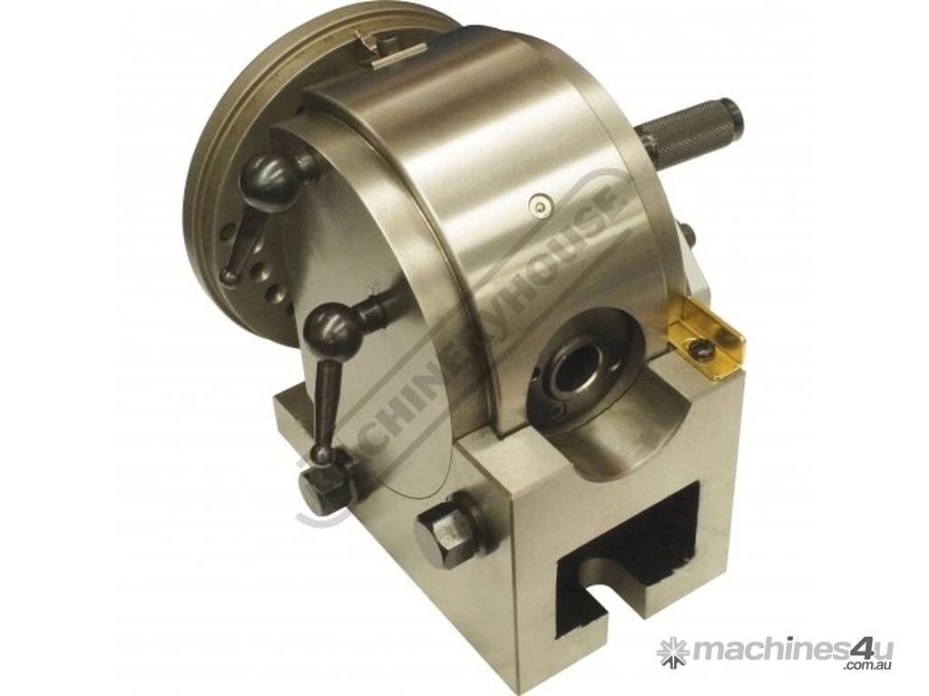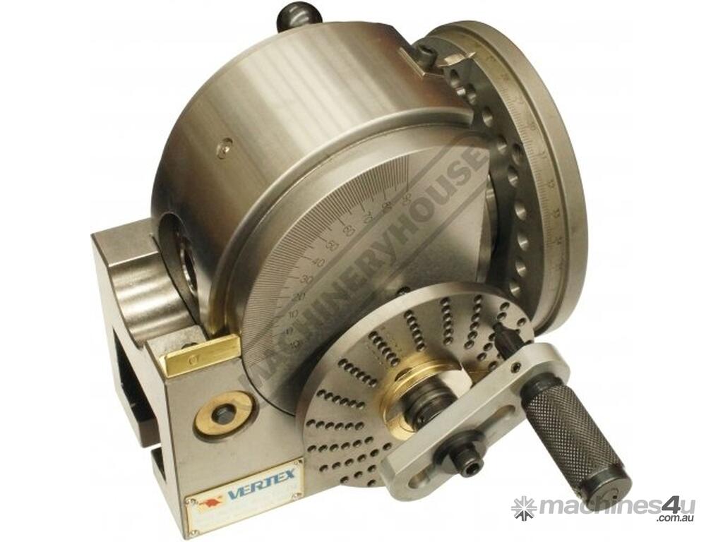 The Vertex Semi Universal Dividing Head can be tilted through a full 90 degrees from horizontal to vertical making it a must when manufacturing bevel gears or key-ways in tapers.