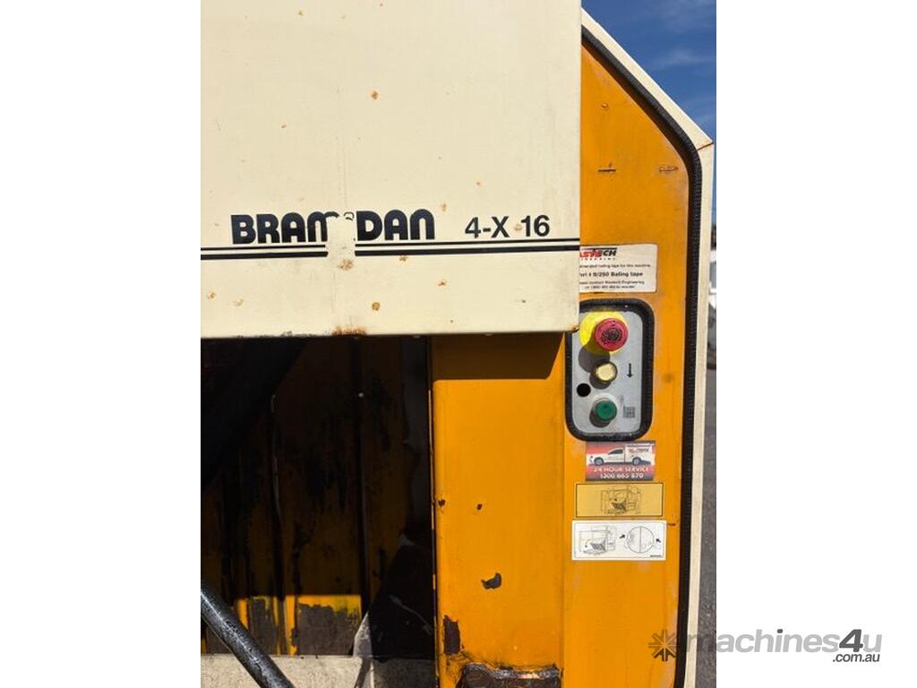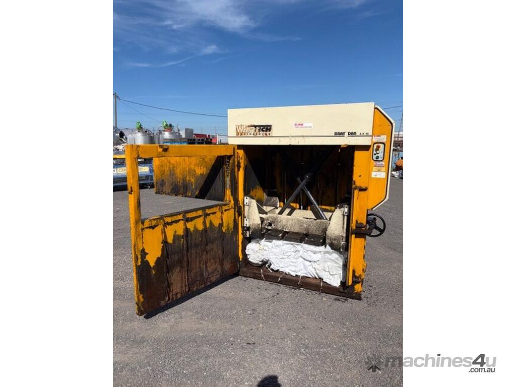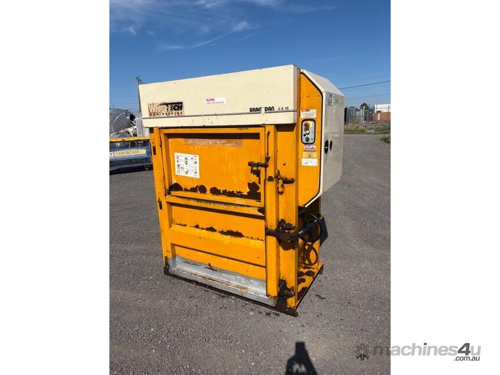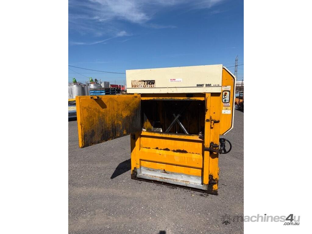 This unit was previously operated in a commercial fibre and cardboard recycling environment, and the Bramdan 4-X-16 is a well-known and respected platform in Australian waste and recycling operations. The machine features a hydraulic downstroke compaction system, manual bale tying, an intact control panel with emergency stop and cycle controls, and is supported by Wastech Engineering\'s Australian service network. This baler suits recyclers, waste contractors, or equipment dealers looking for a reliable baler.