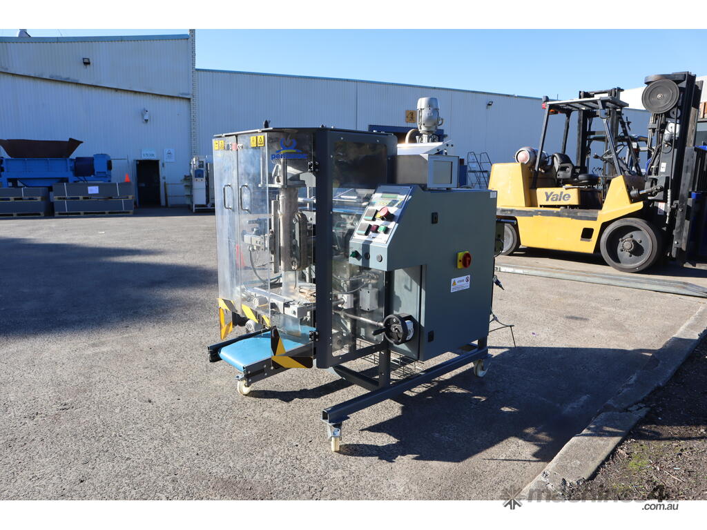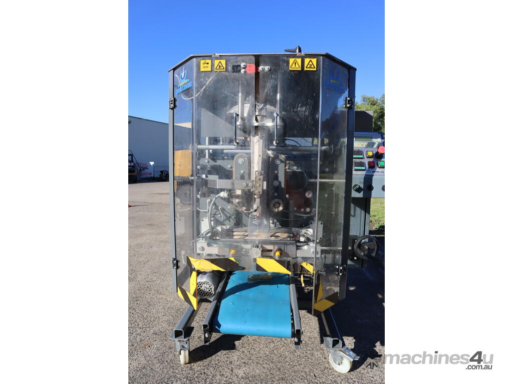 ``This bagger sealer forms sealed bags from a sheet of laminated plastic (roll stock). You fill the bag from the top hopper/funnel. The machine is usually combined with dozers, multi-head weighers, vibro-heads and volumetric fillers.