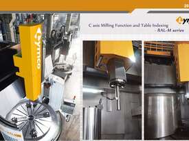 Lymco RAL vertical turning center focuses on general turning needs of everyday shops. Designed with octagonal ram and hydrostatic table, the RAL vertical lathe can handle deep cuts while enjoying a good clearance for ID boring and turning. Upon adding the C axis function, the RAL vertical turning center is capable of milling, drilling, and tapping on a workpiece. The movable cross rail provides a flexible setup for either a high and low profile parts.