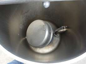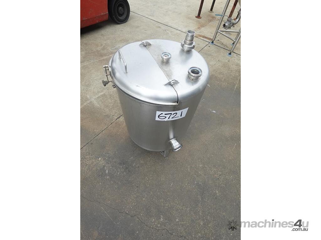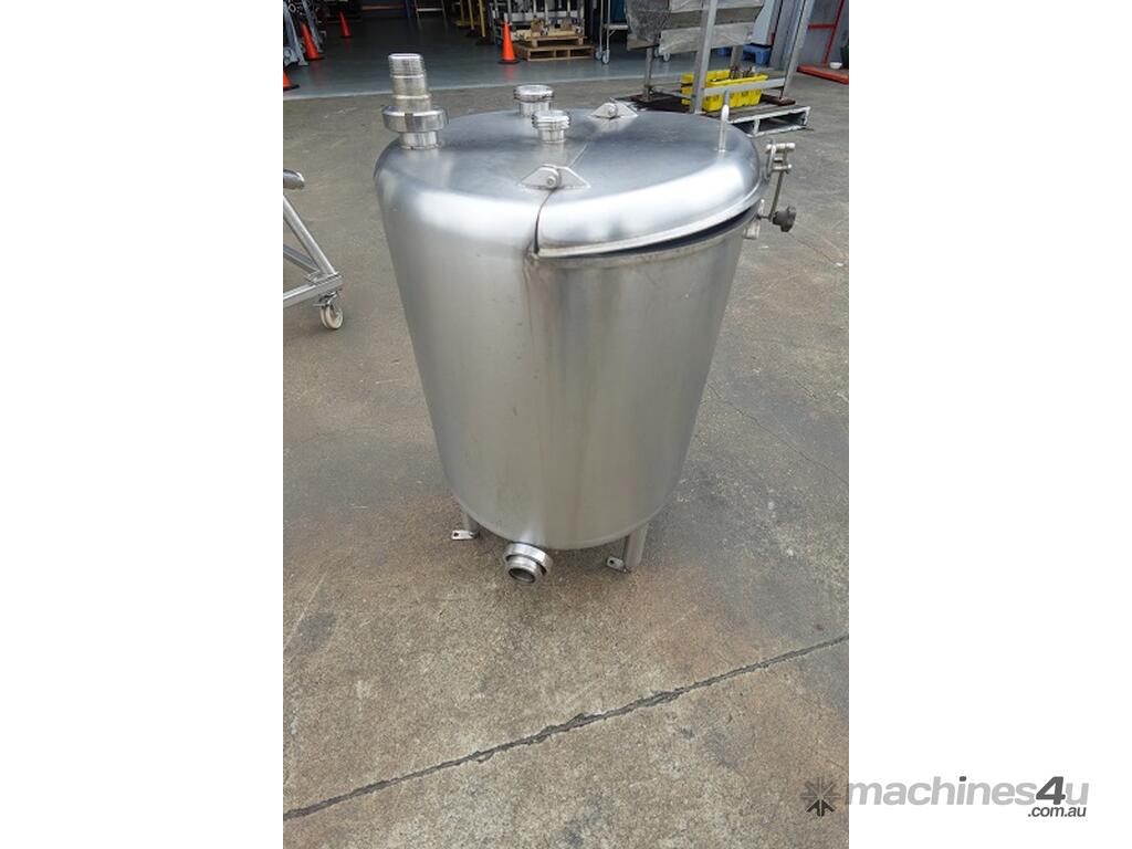 Unit is a stainless steel vertical storage tank with enclosed top with hinged lid.