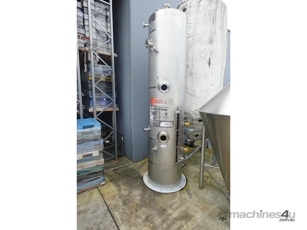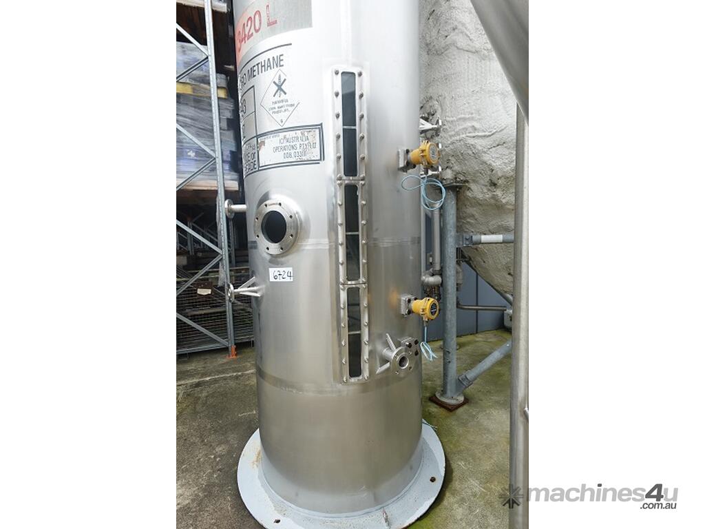 Unit is a stainless steel vertical storage tank suitable for dangerous goods storage.