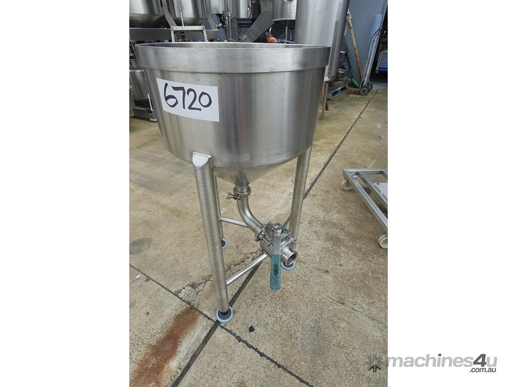 Vertical Stainless Steel Storage Tank, 90 Lt, 490mm Dia x 250mm H straight + 300mm cone :      $850 AUD($935 Inc. GST)
