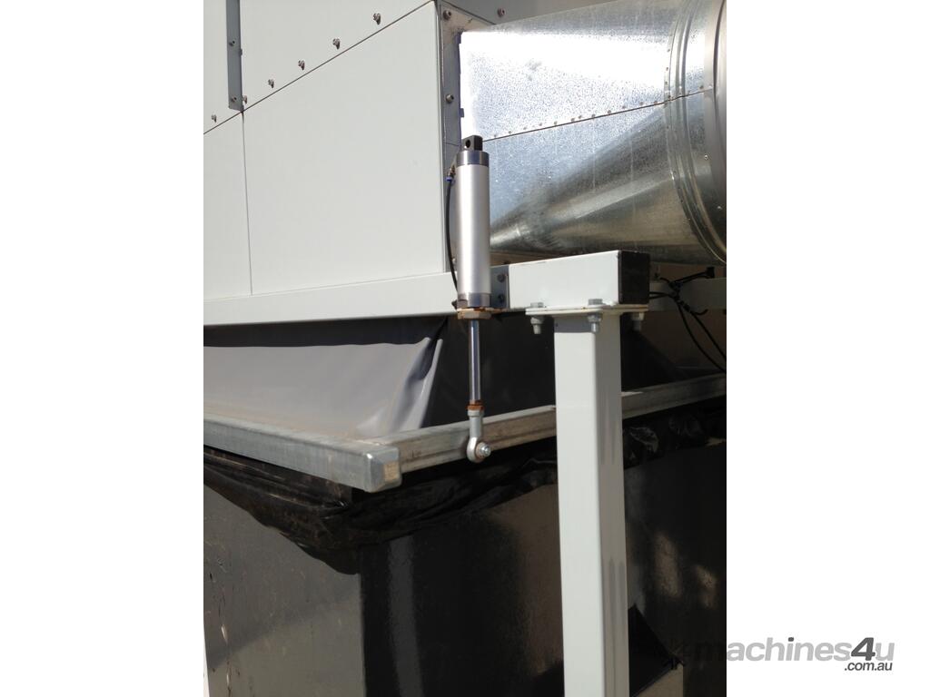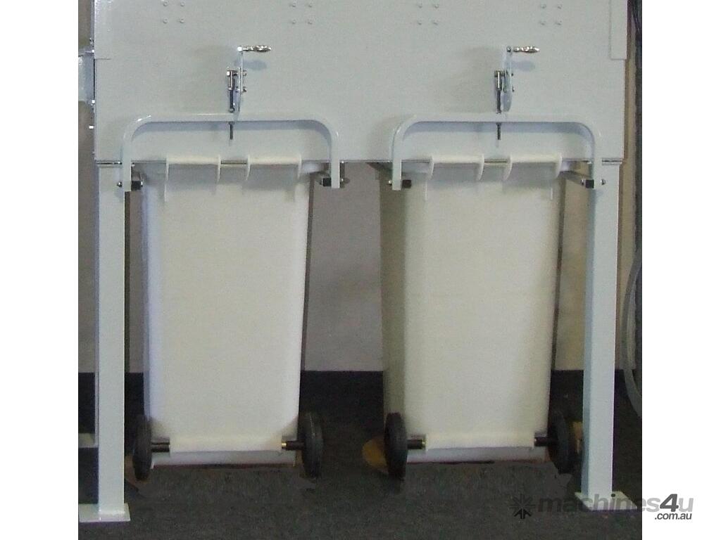 Choose: Dump bin to your size with pneumatic seal built by us to suit. Or quick change twin 240litre wheelie bins. Choice of left, right or rear entry of dirty air. Fan and motor to suit your requirements - with floor or roof mount.Short filter options for tight spots, Variable speed drive for substantial power savings, Rotary valve discharge options- etc.
