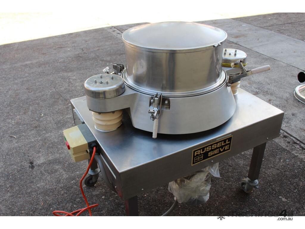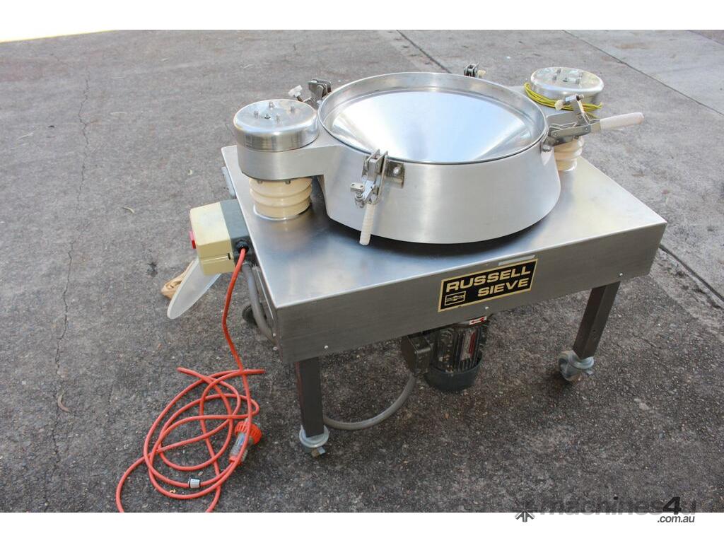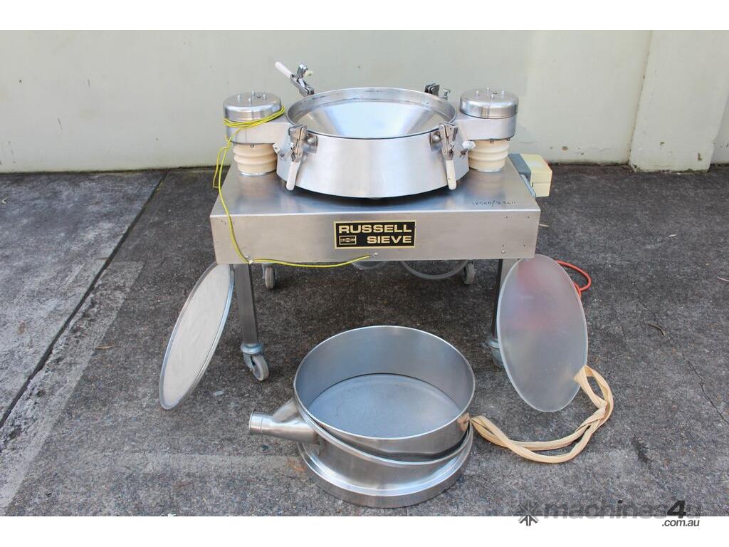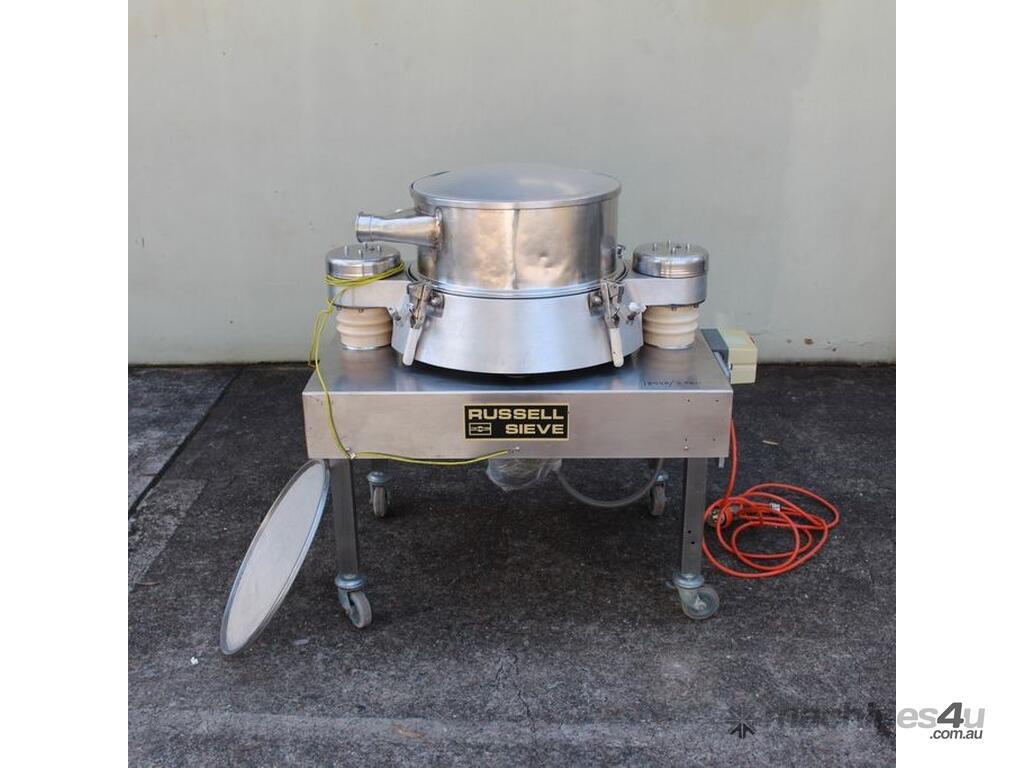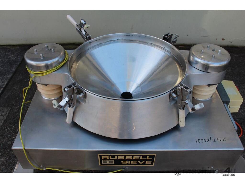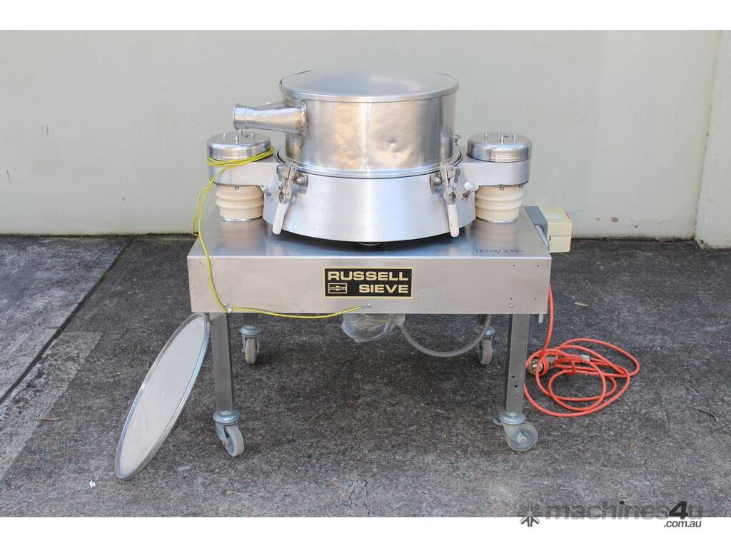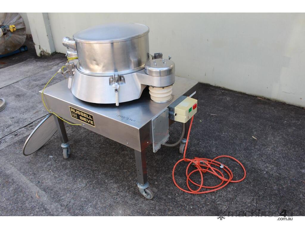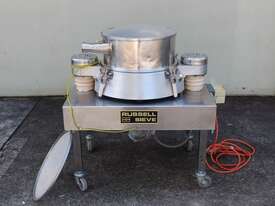 Vibrating Air Swept Sieve, "Russell", 600mm dia mounted on a mobile stainless steel frame, clear Perspex clamped lid, complete with two stainless screens, 3 phase