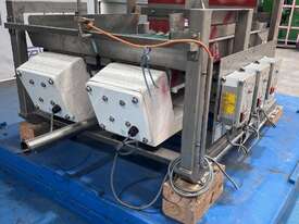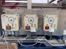 Mounted to a robust stainless steel frame and comes with 3 controllers for the feeders. (One controller missing which can be purchased additionally.)