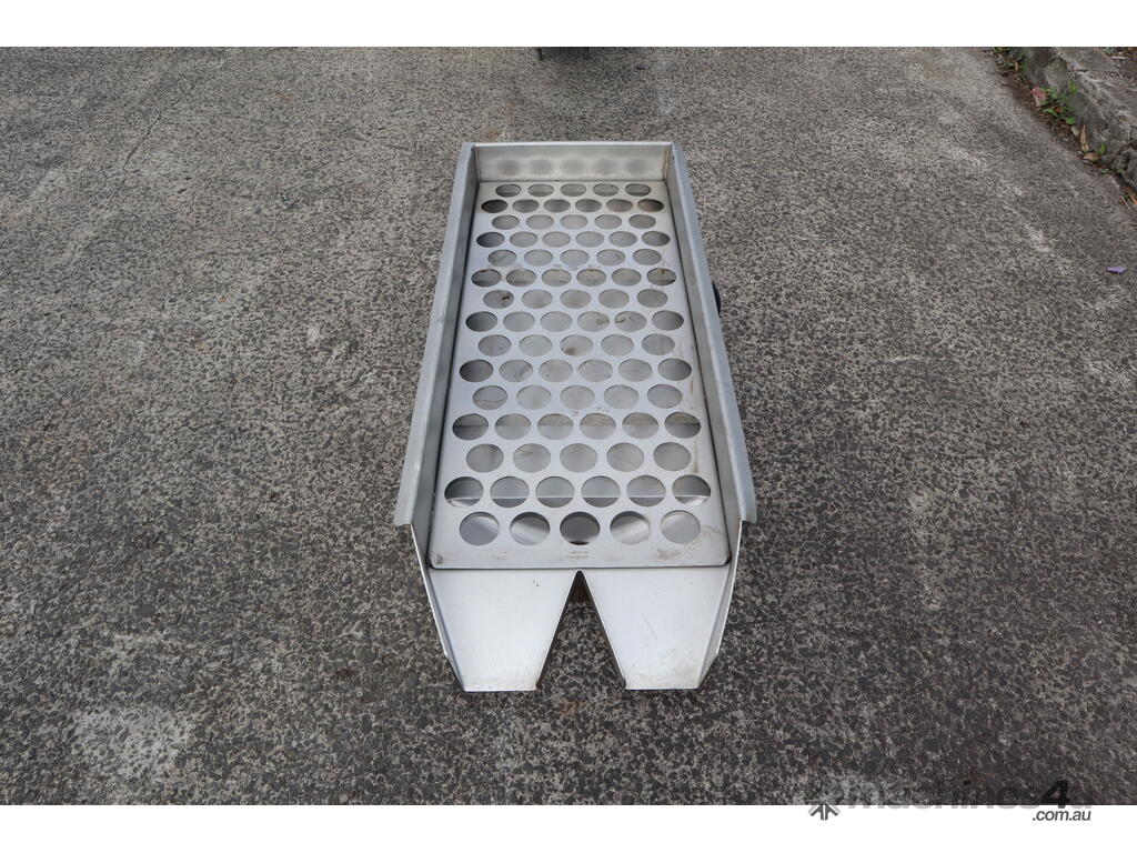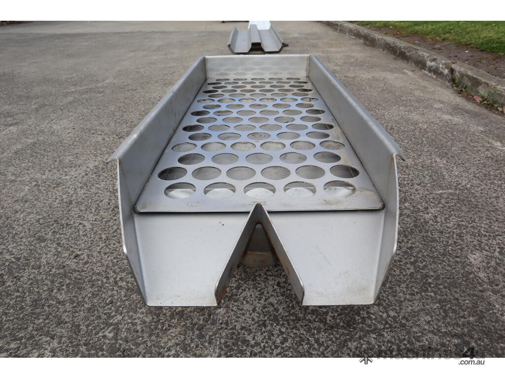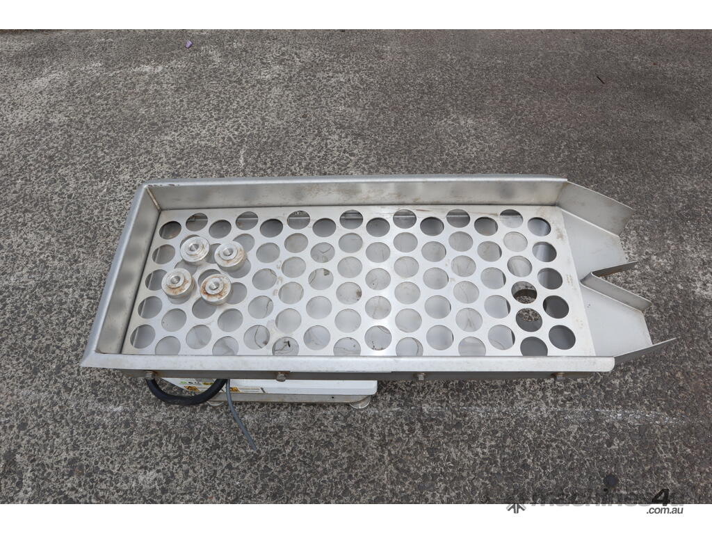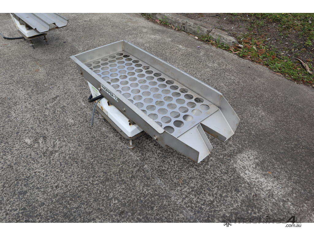 "This vibratory screener may be suitable for applications in industries such as food processing, mining, construction, and material handling. It may be used to sort or filter materials based on particle size through the grille, and its compact design may benefit businesses looking to improve material screening efficiency. The product works by vibrating materials through the grille, allowing sorted material to be collected below or transported onward. The hopper may facilitate easier loading and may improve the flow of material onto the screener."