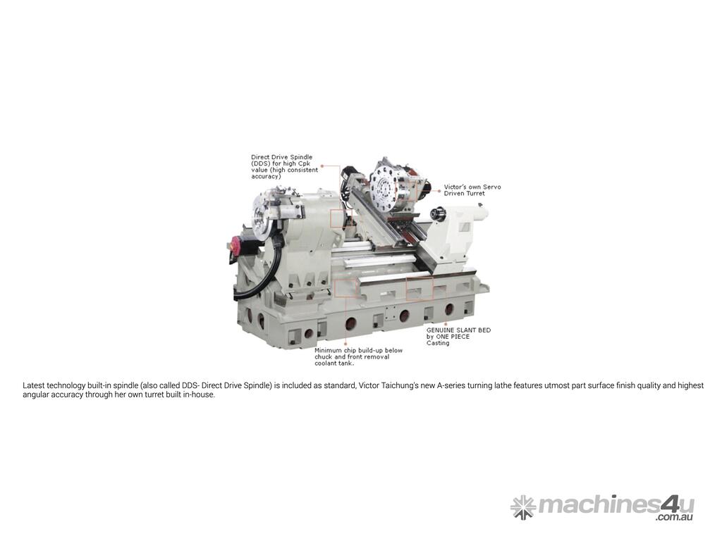 With more than 55 years of experience on lathe manufacturing, Victor Taichung's Vturn A-series lathes have upgraded the structure rigidity on the headstock, box slideways, turret, carriages and even the coolant and chip disposal to enhance the machine reliability.