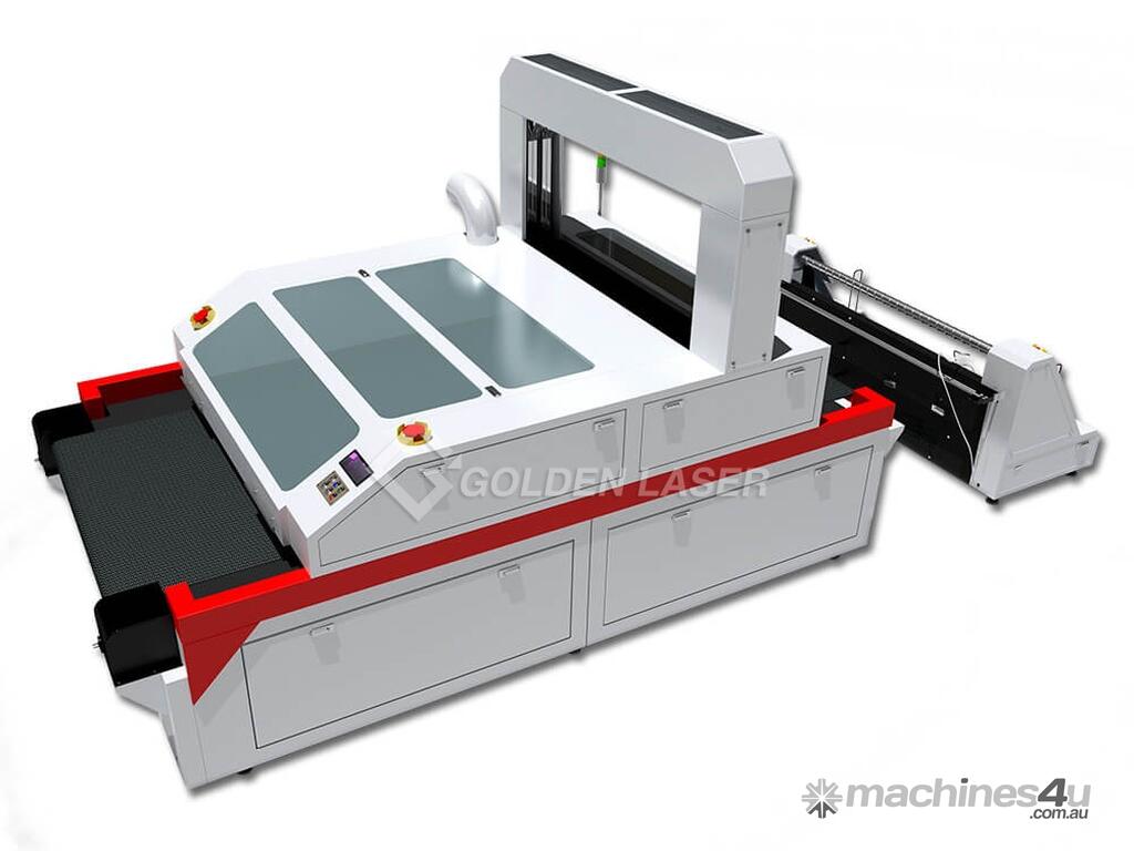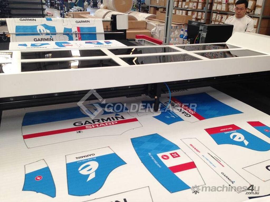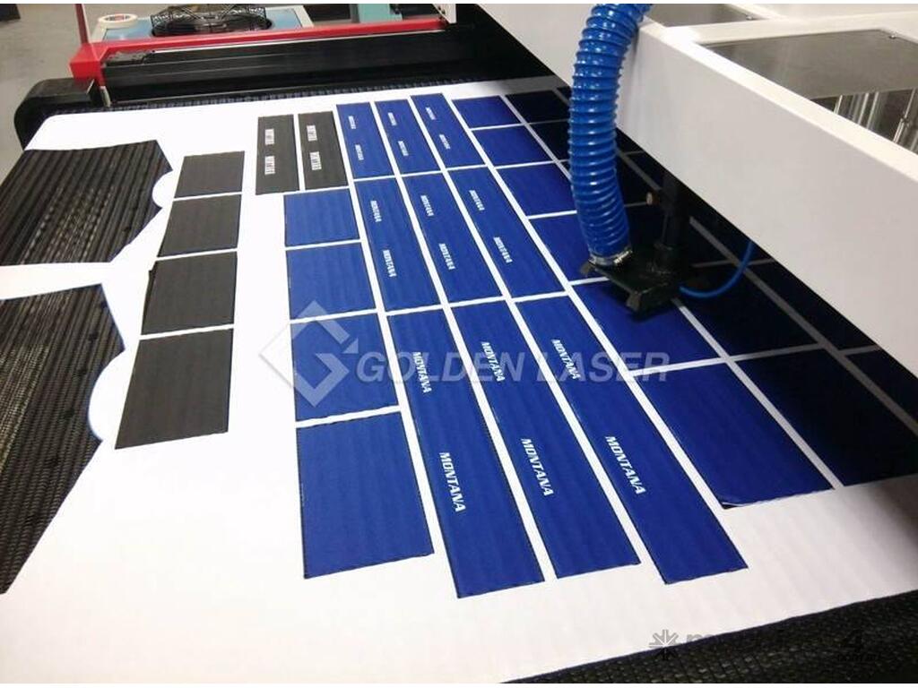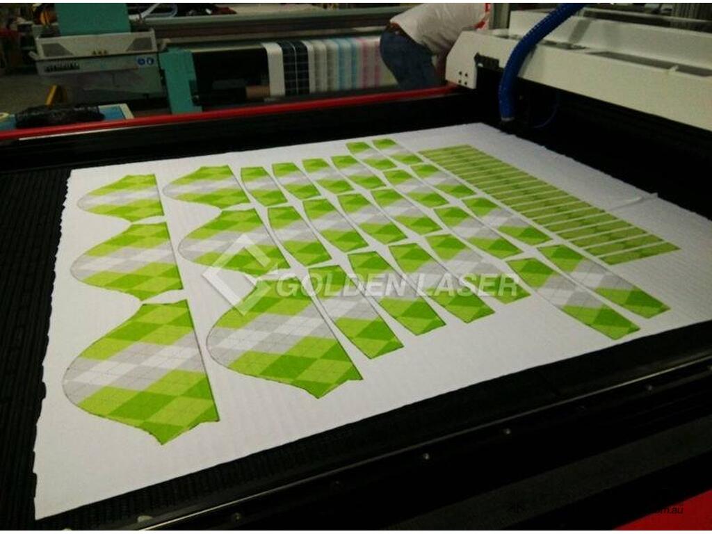 Laser cutting integrated with vision recognition system serves as a perfect laser cutting machine for dye sublimation printed fabrics finishing. Cameras scan the fabric during the conveyor advancing, detect and recognize printed patterns contour or pick up printed registration marks, and send the cutting information to the laser cutting machine. This process is repeating after the machine finishes to cut the current format. The entire process is completely automated.