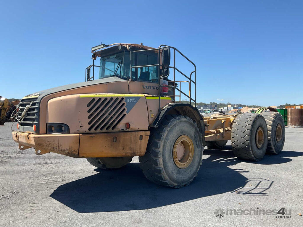 No C/P,Volvo,A40D,6x6 Articulated Dump Truck,Diesel Turbo,169811 (Kms. Showing on Odometer),17827 (Hrs. Showing on Hour meter),Colour: Yellow,Unregistered,Serial No: A40DV60102,ROPS No: null,Sold with No Plates,Key No: 437E