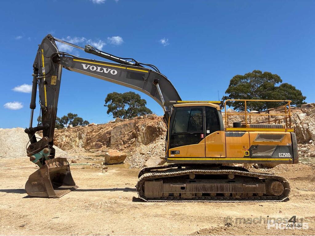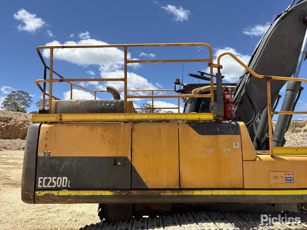 No C/P,Volvo,EC250DL,Excavator (Steel Tracked),6 Cyl,Diesel,Odometer not visible,8727 (Hrs. Showing on Hour meter),Colour: Yellow Grey,Unregistered,Serial No: VCEC250DC00270723,FOPS No: 14674908,Sold with No Plates