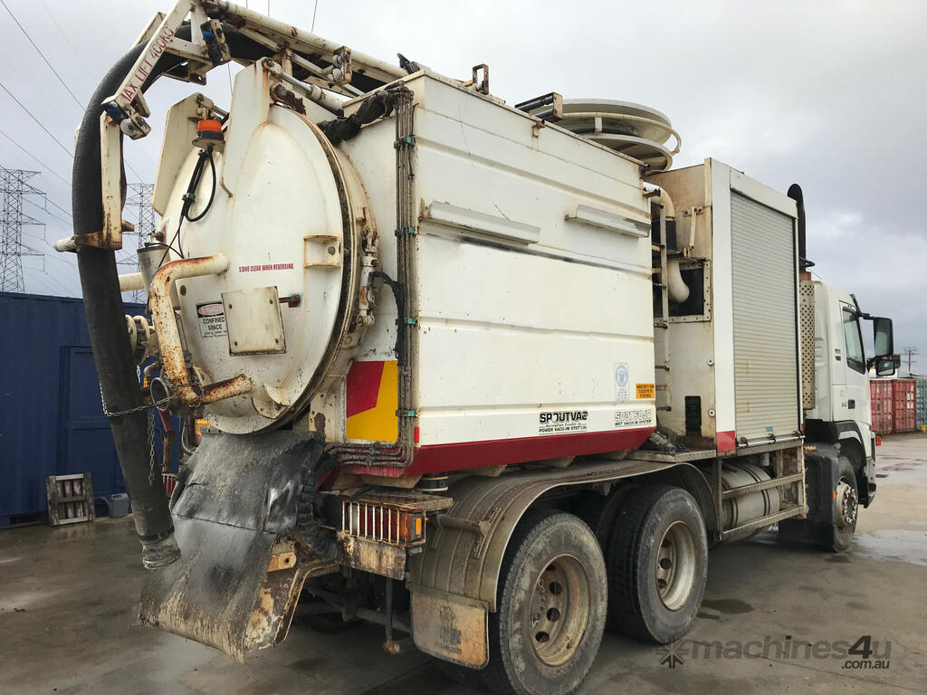 03/04, Volvo, FM9, 6 x 4, Vacuum Truck, 6 Cyl, Diesel, Turbo, 9 speed Manual, AirBag, 303,567 Kms White, c/w , Spoutvac SV3750JB Jetting Vacuum Combination Body, 10781 Hours, ,, GVM: 27500.00 Kg, GCM: 50000.00 Kg.