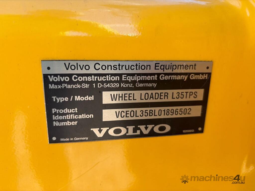 No C/P,Volvo,L35 TP/S,Articulated Wheel Loader,4 Cyl,Diesel,Odometer not visible,Hourmeter not visible,Colour: Yellow,Unregistered,VIN: VCE0L35BL01896502,Serial No: VCE0L35BL01896502,Sold with No Plates,Key No: 149