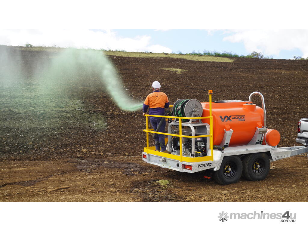 A born leader in its class. The Vortec VX2000 provides the ultimate in performance that you'd expect from a leader in quality and innovation. A 1900L Poly Tank, aggressove paddle agitation, high flow gear pump and options such as remote control, make this the machine of choice for applying hydromulch, soil binders or flocculants!