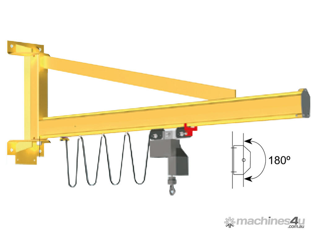 Under braced wall mounted JIB cranes offer 180 degree rotation and mount easily to any substantial structural steel building column, at any desired height.