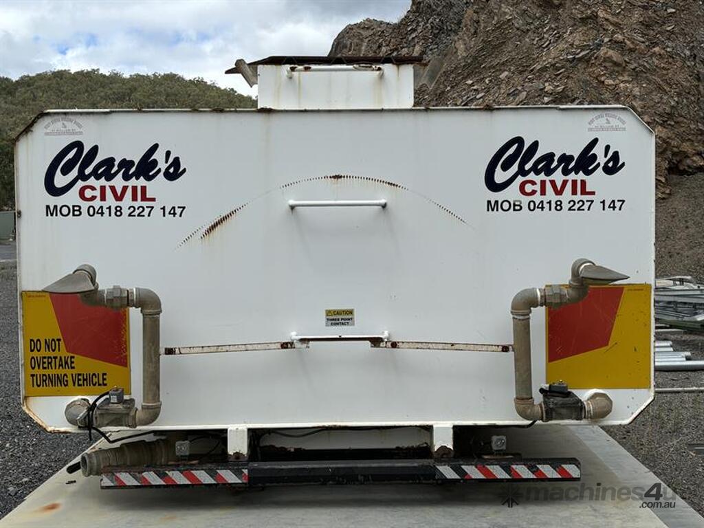 WATER TANK BODY, 5m long, approx 13 000L capacity, hydraulic drive pump included, side and rear sprays with solenoids, very good condition, located Kandos, available via MRE Auctions, contact Jono