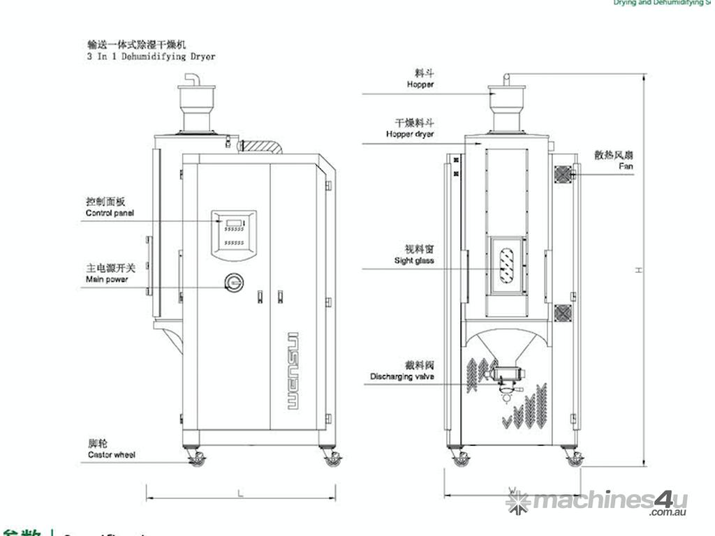 * Insulating drying hopper with European standard allows better heat preservation and drying efficiency.