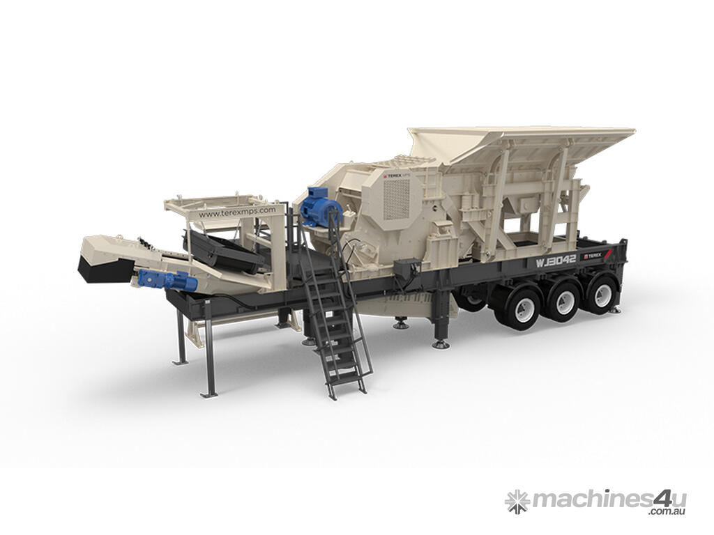 The Terex® MPS WJ3042 is a high performance and aggressive wheeled jaw crusher plant. Incorporating a JW42 jaw crusher and a heavy duty vibrating grizzly feeder, the WJ3042 gives optimum production in a range of applications. Plant installation is assisted with hydraulic legs. Its compact size, quick set up times, ease of transport and simple maintenance make the WJ3042 ideal for quarrying, mining, demolition and recycling applications.